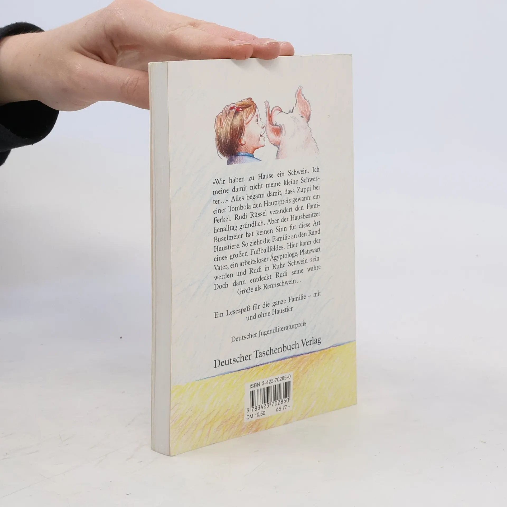 Deutscher Jugendliteraturpreis »Wir haben zu Hause ein Schwein. Ich meine damit nicht meine kleine Schwester...« Alles begann damit, dass Zuppi bei einer Tombola den Hauptpreis gewann: ein Ferkel. Rudi Rüssel verändert den Familienalltag gründlich. Aber der Hausbesitzer Buselmeier hat keinen Sinn für diese Art Haustiere. So zieht die Familie an den Rand eines großen Fußballfeldes. Hier kann der Vater, ein arbeitsloser Ägyptologe, Platzwart werden und Rudi in Ruhe Schwein sein. Doch dann entdeckt Hausschwein Rudi seine wahre Größe als Rennschwein... Ein Lesespaß für die ganze Familie - mit und ohne Haustier.
