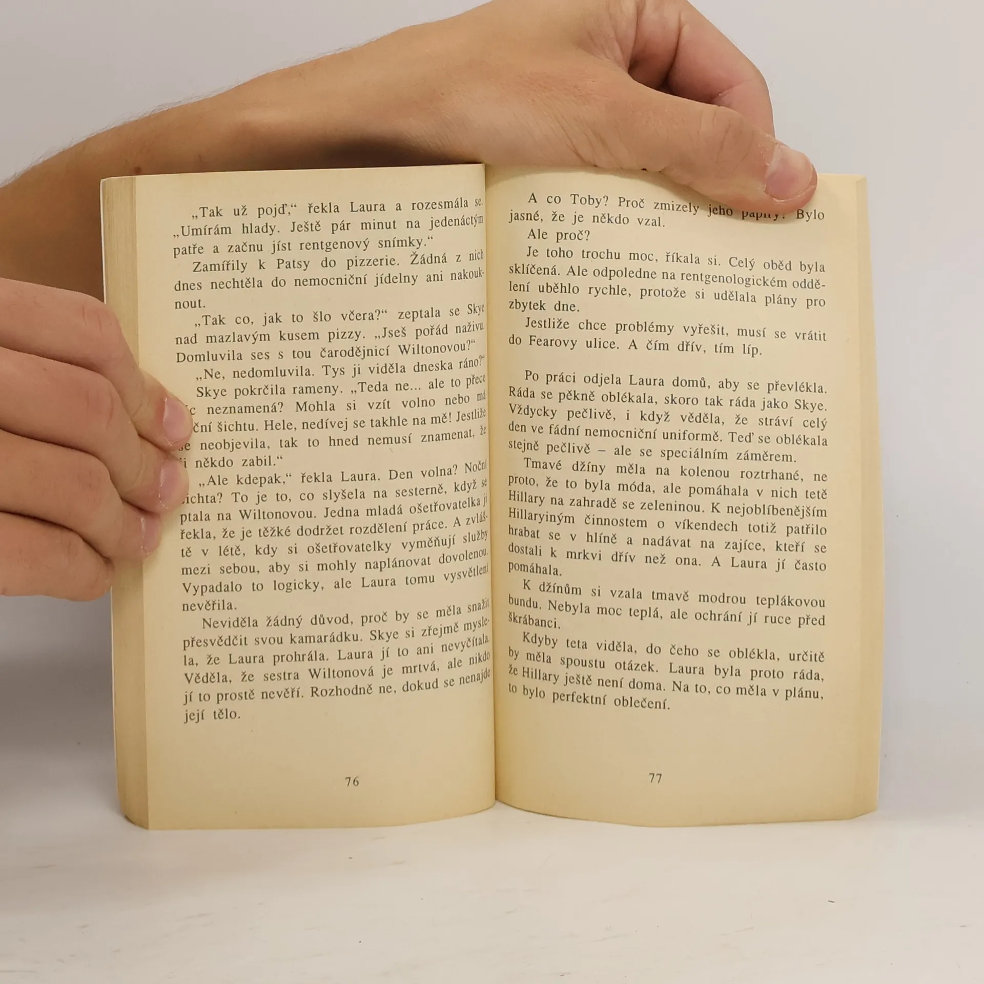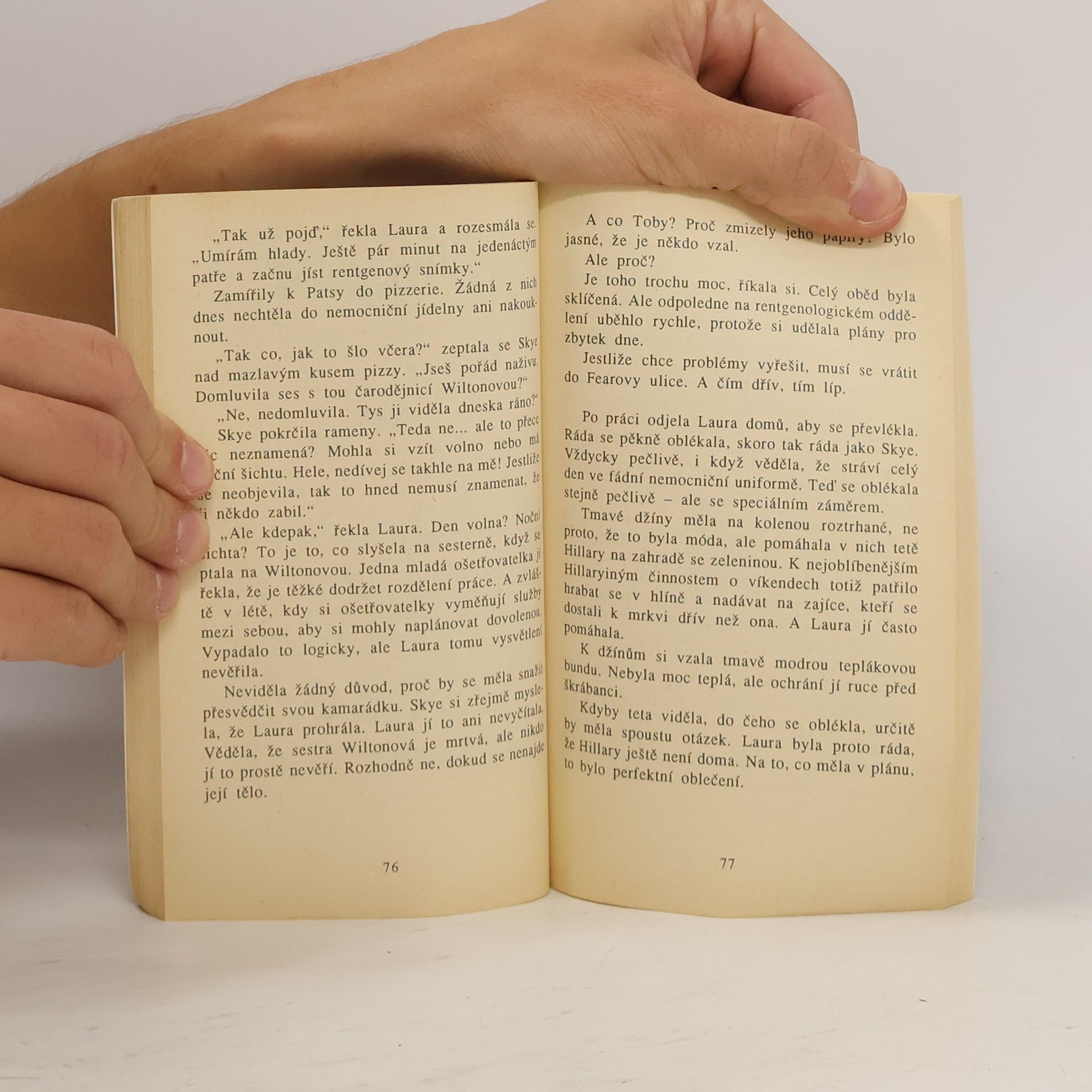 Je jedno malé město a v něm Ulice Hrůzy (i tak by se dal přeložit anglický název Fear Street). V nemocnici na téhle ulici se začíná odvíjet záhadný příběh, u jehož zrodu je naříkavý pláč nemocného chlapce. Studentka Laura, která je v nemocnici na praxi, se o malého Tobyho zajímá a je znepokojena, když náhle z nemocnice zmizí. Při pátrání po něm najde jednu z ošetřovatelek zavražděnou… Laura se však nevzdává, i když i její život se ocitá v nebezpečí. Modrá honda s neznámým řidičem ji sleduje na každém kroku… Podaří se Lauře a její přítelkyni rozplést síť záhad kolem nemocnice v Ulici Hrůzy a zjistit, jaký zločin se skrývá po bílým pláštěm…?... celý text