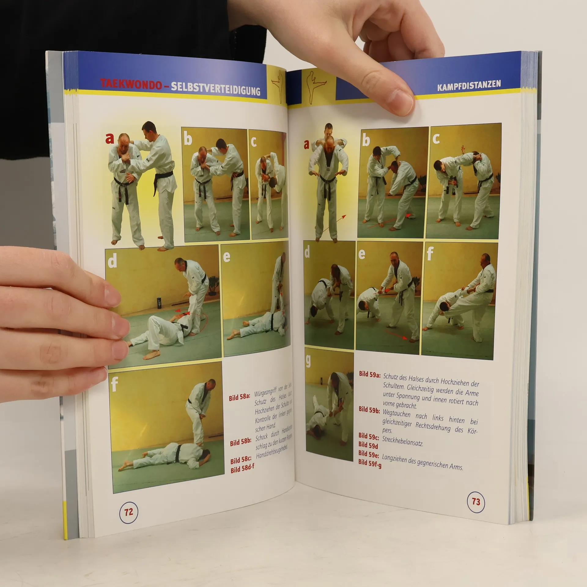 Das Buch Um die Selbstverteidigung unabhängig vom Wettkampf wirksam zu trainieren, werden Trainern und Aktiven hier sinnvolle Techniken und Trainingsformen vorgestellt. Diese erlauben es dem Taekwondoka, nicht nur bei der Prüfung im Teil „Selbstverteidigung“ gut abzuschneiden, sondern sich im Gefahrenfall auch effektiv wehren zu können. Die vorgestellten Techniksequenzen sollen den Taekwondosportler längerfristig dazu führen, aus den angebotenen Bausteinen seine individuelle Selbstverteidigung zu entwickeln. Dieses Buch deckt alle geforderten Prüfungsinhalte der Prüfungsordnung der Deutschen Taekwondo Union im Fach „Selbstverteidigung“ ab.