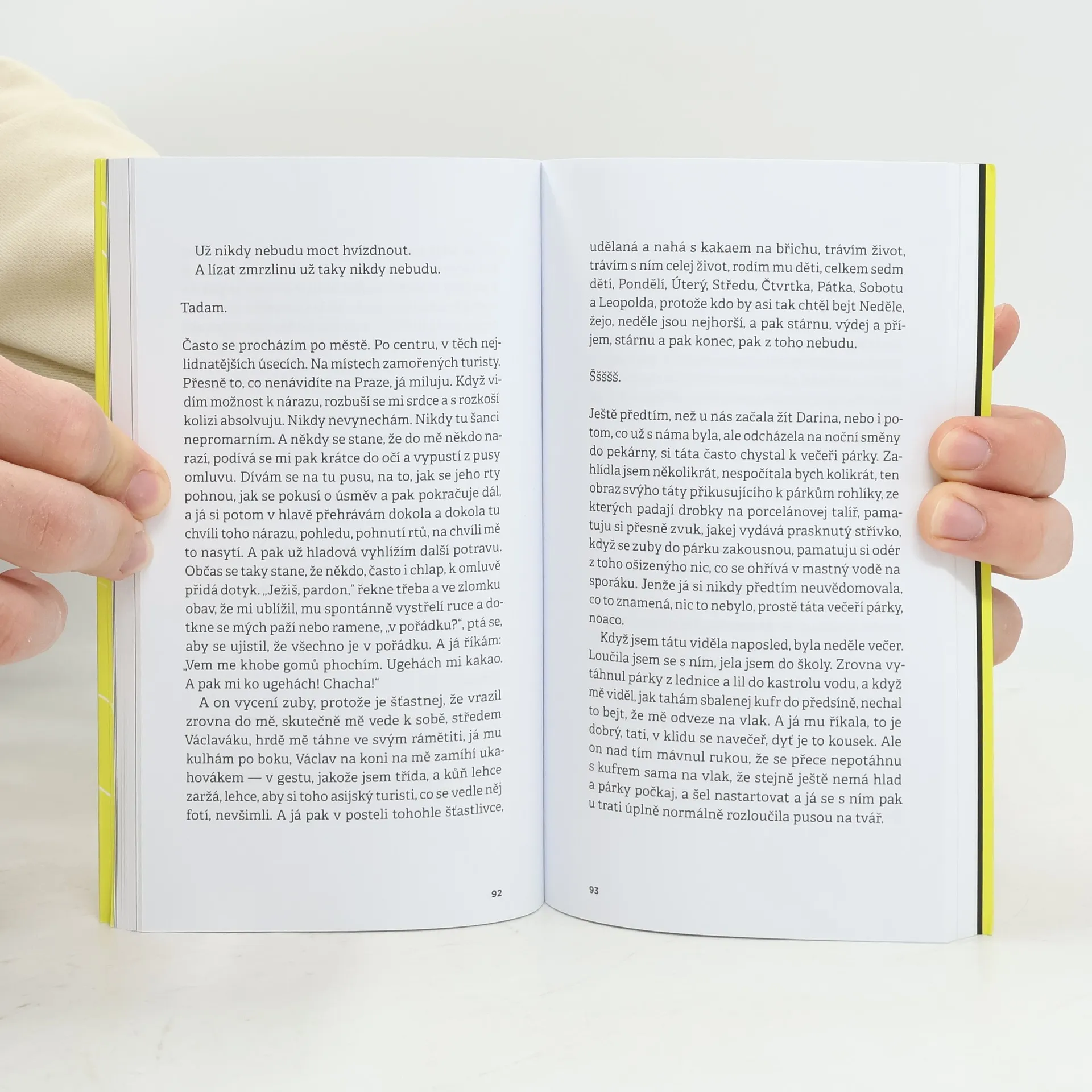 Hlavní hrdinka druhého románu Lucie Faulerové se vyrovnává s několika tragickými rodinnými událostmi, které se mohou zdát nepochopitelné, a snaží se najít jejich příčinu. Cestu vpřed však nelze zvládnout bez ohlédnutí. V důsledně rytmizované próze vycizelované do mimořádné stylové čistoty nás mladá dívka, zasažená rodinnou tragédií i vlastním svědomím, uvádí do prostředí tří sourozenců, které nevysvětlitelně opustila matka, zasáhla nemoc, a přesto v uzavřené buňce rodiny zůstalo díky otci i sourozeneckému poutu prostředí nabízející východisko pro toho, kdo je ochoten je přijmout. Zdá se, že nejtěžší boj je třeba vybojovat ve vlastní hlavě, nabízenou lásku akceptovat, a spolu s ní i vyrovnání s vnitřními démony odmítání a viny. Přestože nastíněný děj nevzbuzuje příliš optimismu, i na takto dramaticky vykolíkovaném poli dala autorka vyrůst humoru, který charakterizuje postavy, jejich vztahy či nepřeberné množství sebepoznávacích metod a návodů na ideální život.