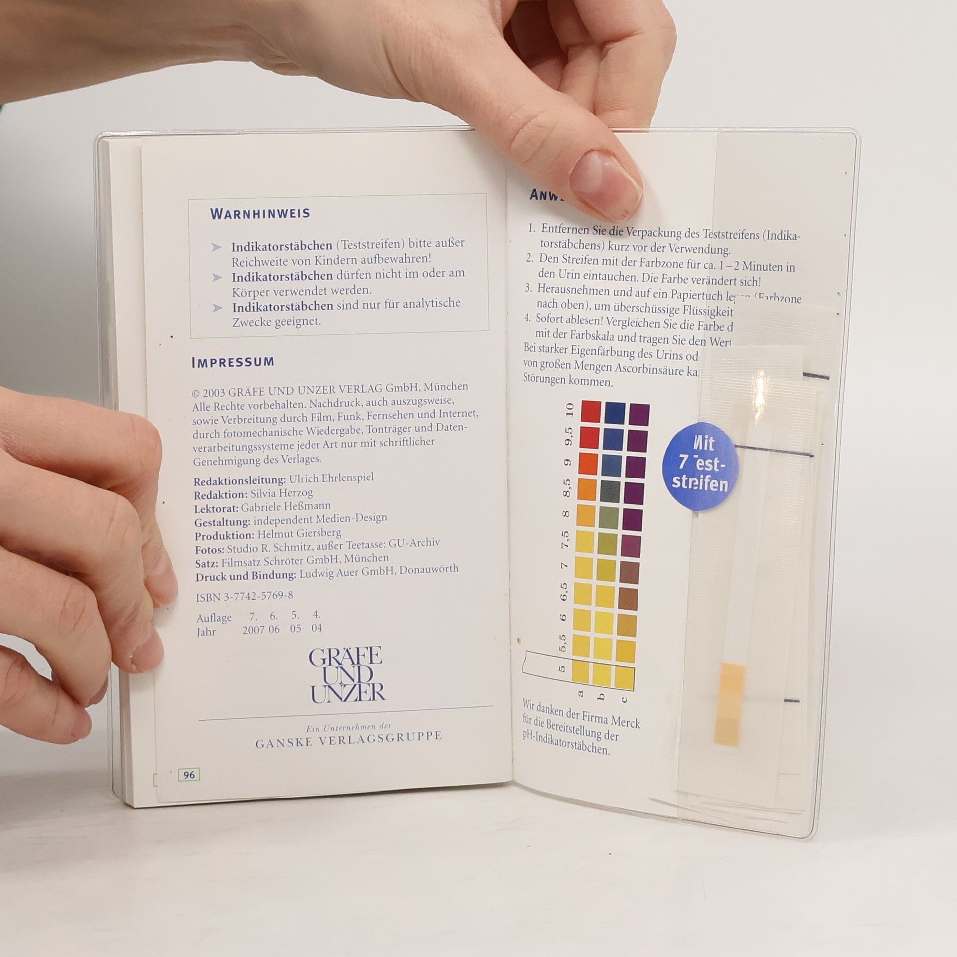 Häufiges Sodbrennen, Reizmagen, Verspannungen, Übergewicht, Schlafstörungen und Erschöpfung sind Anzeichen für eine Übersäuerung. Zu viele säurebildende Lebensmittel wie Fleisch, Produkte aus Weißmehl und Zucker bringen den Körper aus der Balance. Stress und Bewegungsmangel verstärken die Symptome. Der Kompass gibt Tipps für eine ausgewogene Ernährung, bietet Rezepte sowie Menüvorschläge für das Essen außer Haus. Die Tabellen zeigen, welche Lebensmittel sauer, basisch oder neutral sind und liefern Zusatzinfos zu wichtigen Nährstoffen. Auch begleitende Maßnahmen, wie z. B. Sauna, werden vorgestellt. Extra: 8 Teststreifen für das persönliche Tagesprofil.