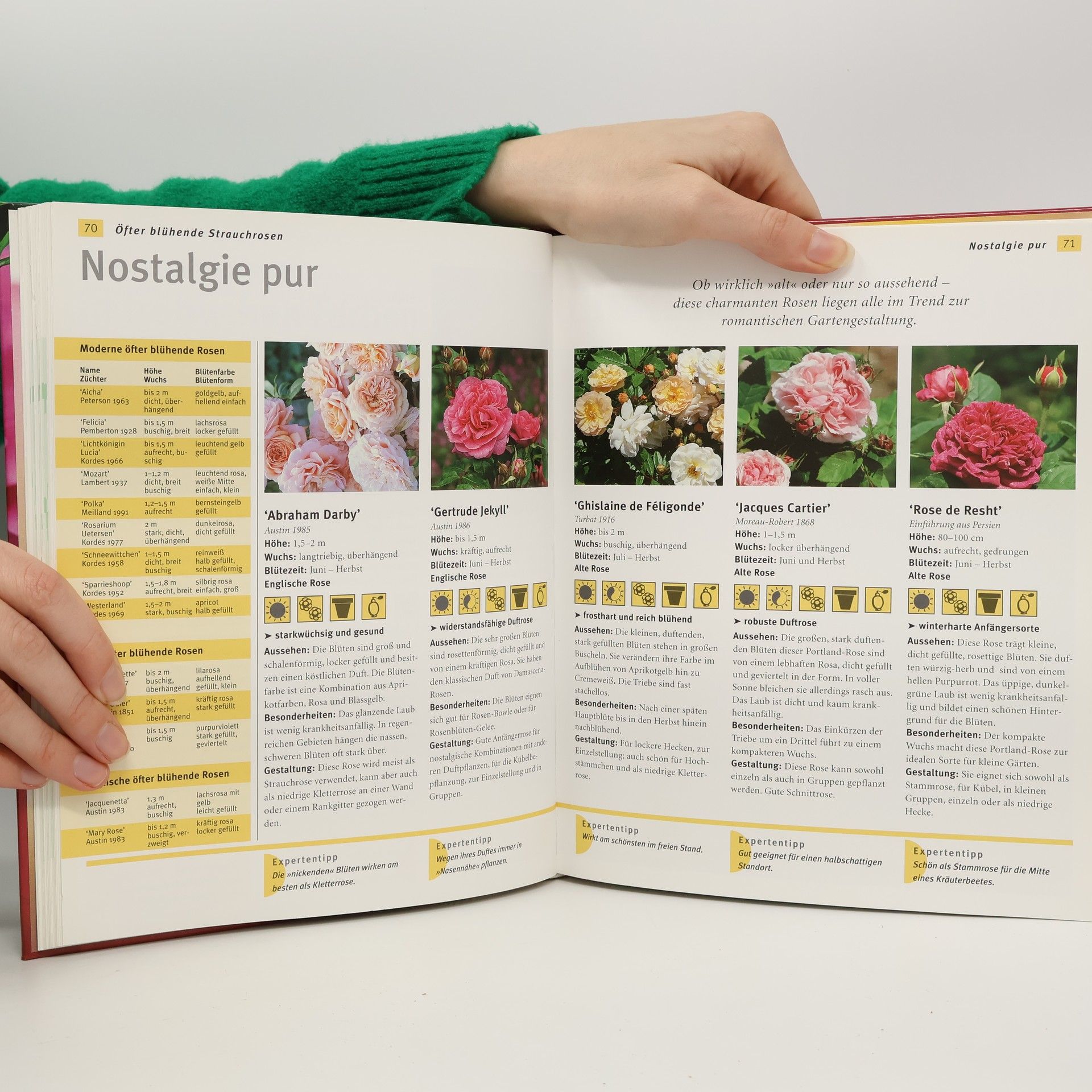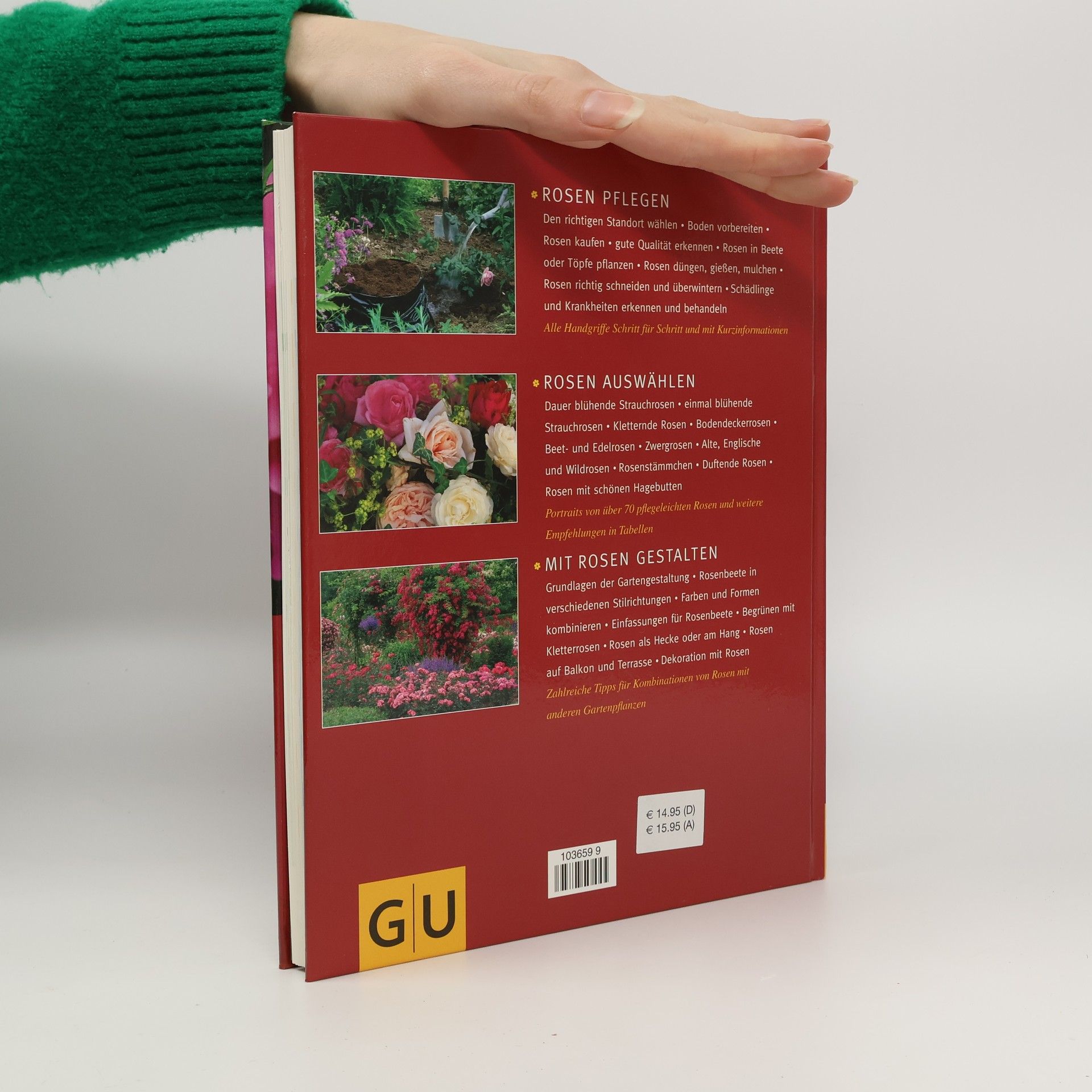 Die Rose ist die Nr. 1 auf der Hitliste der beliebtesten Gartenpflanzen. Jeder Gartenbesitzer möchte sein grünes Paradies mit ihrer Blütenpracht schmücken. Als graziöse „Diva“ mit bezauberndem Duft steht sie in dem Ruf, anspruchsvoll zu sein. Gerade Einsteiger unter den Rosenliebhabern brauchen und suchen für dem Umgang mit der Gartenschönheit Anleitung. Das GU-Buch zeigt alles über die richtige Auswahl und Pflege von Rosen im Garten. Viele Schritt-für-Schritt-Anleitungen zum richtigen Pflanzen, zum Schnitt und zum Pflanzenschutz machen die Handgriffe für jeden Laien sehr anschaulich. Über 70 ausführliche Rosenporträts mit Foto, sowie weitere Rosensorten in Tabellen geben einen umfassenden Überblick über das aktuelle Rosensortiment. Der Hinweis auf besonders pflegeleichte Sorten erleichtert dem Einsteiger die Wahl. Die vielen Gestaltungsbeispiele für jede Gartensituation und Porträts von geeigneten Begleitpflanzen runden das Ganze ab. Dieser Ratgeber eröffnet den Weg zum selbst gestalteten, üppigen Rosenparadies.