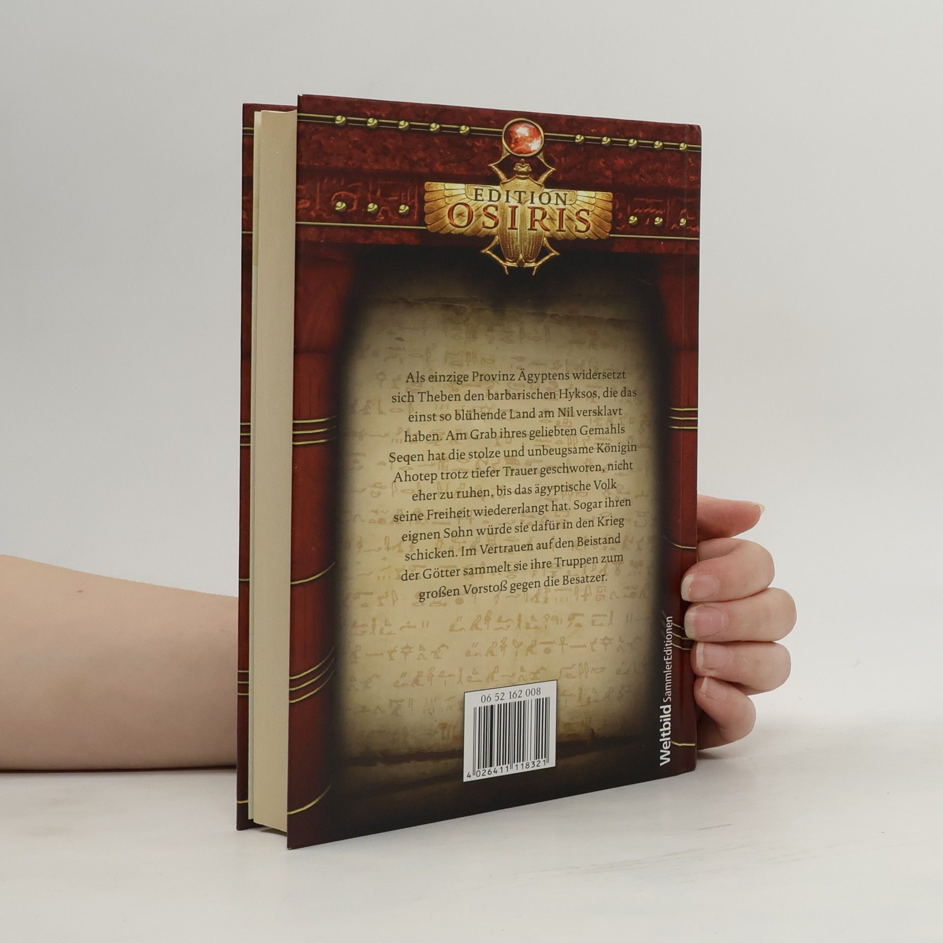 Als einzige Provinz Ägyptens widersetzt sich Theben den Hyksos, die das einst so blühende Land unterjocht haben. Die unbeugsame junge Königin Ahotep hat am Grab ihres geliebten Gemahls Seqen geschworen, nicht eher zu ruhen, bis das Volk der Ägypter wieder in Freiheit lebt. Sie ist sogar bereit, ihren eigenen Sohn in den Krieg zu schicken, um das Land von den barbarischen Eroberern zu befreien, die mit Pferdewagen und unbekanntem Kriegsgerät über das friedfertige Land hereingebrochen sind. Unerschrocken bereitet Ahotep den Aufstand vor. Doch auch Apophis, der grausame König der Hyksos, ist schlau und ahnt, dass er die Kraft dieser charismatischen Herrscherin nicht unterschätzen darf. Tausende von Skarabäen werden gestreut, mit der Kunde, die Königin von Theben sei tot. Und es kommt noch schlimmer - von ihrem treuen Haushofmeister Qaris muss Ahotep erfahren, dass es einen Verräter gibt. In den eigenen Reihen. "'Die Königin von Theben' ist die mitreißende Geschichte eines Landes, einer königlichen Familie, einer außergewöhnlich mutigen und unbeugsamen jungen Frau, die den Beinamen 'Jeanne d'Arc von Theben' wahrhaft verdient." Quotidien Règional