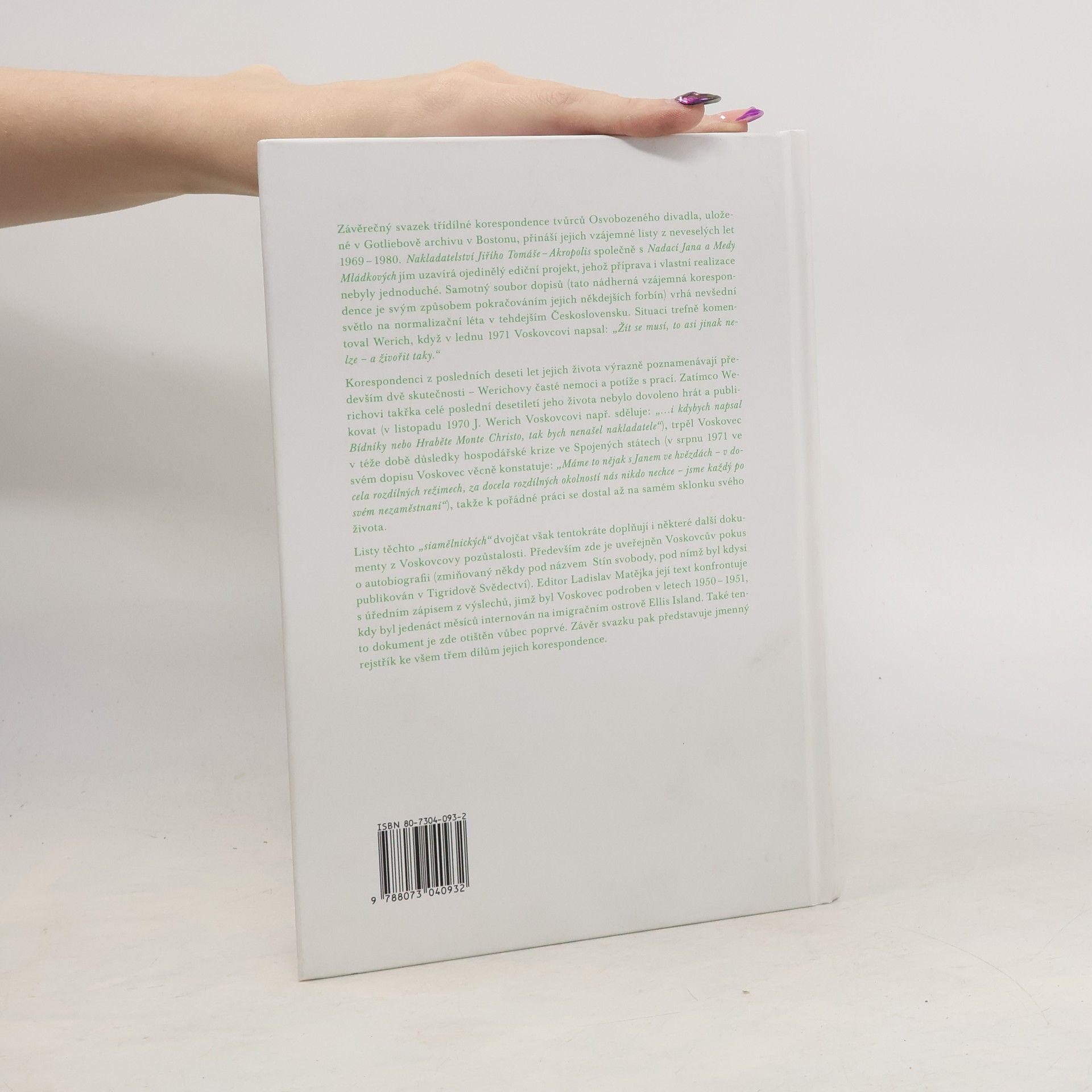 Závěrečný díl třísvazkového projektu dosud nepublikované korespondence V+W, který je strhujícím svědectvím nejen jejich originality a umělecké zralosti, ale současně odhaluje i osudy těchto významných osobností v bipolárním světě.