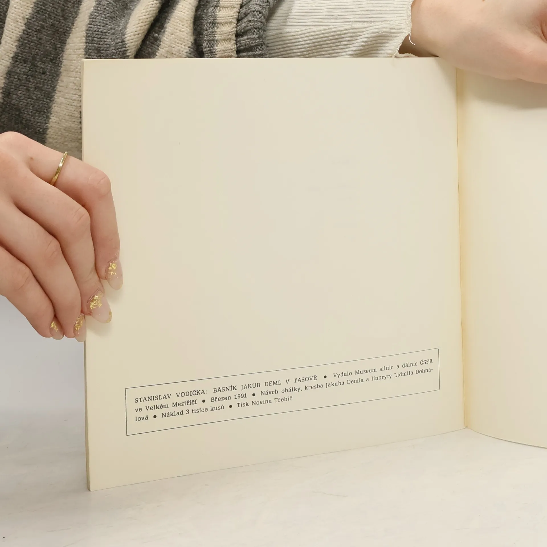 Stanislav Vodička je znám jako autor přírodních básnických próz z okolí Tasova: Tam, kde usínají motýlové (1978), Planina ticha (1983) a Jepičí okamžiky (1990). Tyto prózy v době svého vydání zaznamenaly mimořádný čtenářský i kritický ohlas. Kniha Básník Jakub Deml v Tasově je jedinečným svědectvím o životě velkého českého básníka. Její autor v úvodu k ní říká: "Když mi bylo třicet pět roků, seděli jsme s Jakubem Demlem v mé dílně, a když jsem mu sdělil své výročí, tak se hlasitě rozesmál a řekl: "To dyž mně bylo tolik let, tak jsem sekal kolem sebe hlava nehlava. Jen se hlavy kutálely." Čtenáři jeho knih to znají. Zaznamenávám krátký úsek jeho života. Není to nic víc než vzpomínky na Jakuba Demla v Tasově, a jestliže přece jenom někdy zabrnknu o jeho pero, potom je to proto, že když jsem ho doprovázel domů a zastavili jsme se na té lávce ze dvou otesaných trámů, která vedla přes tasovský potok, a on se zadíval do vody, kde se projížděly rybky, tak jenom jako by povzdechl: "Běličky, rybičky". Byla to neoddělitelná součást našich kroků. S takovým záměrem vzpomínám." 1. vydání