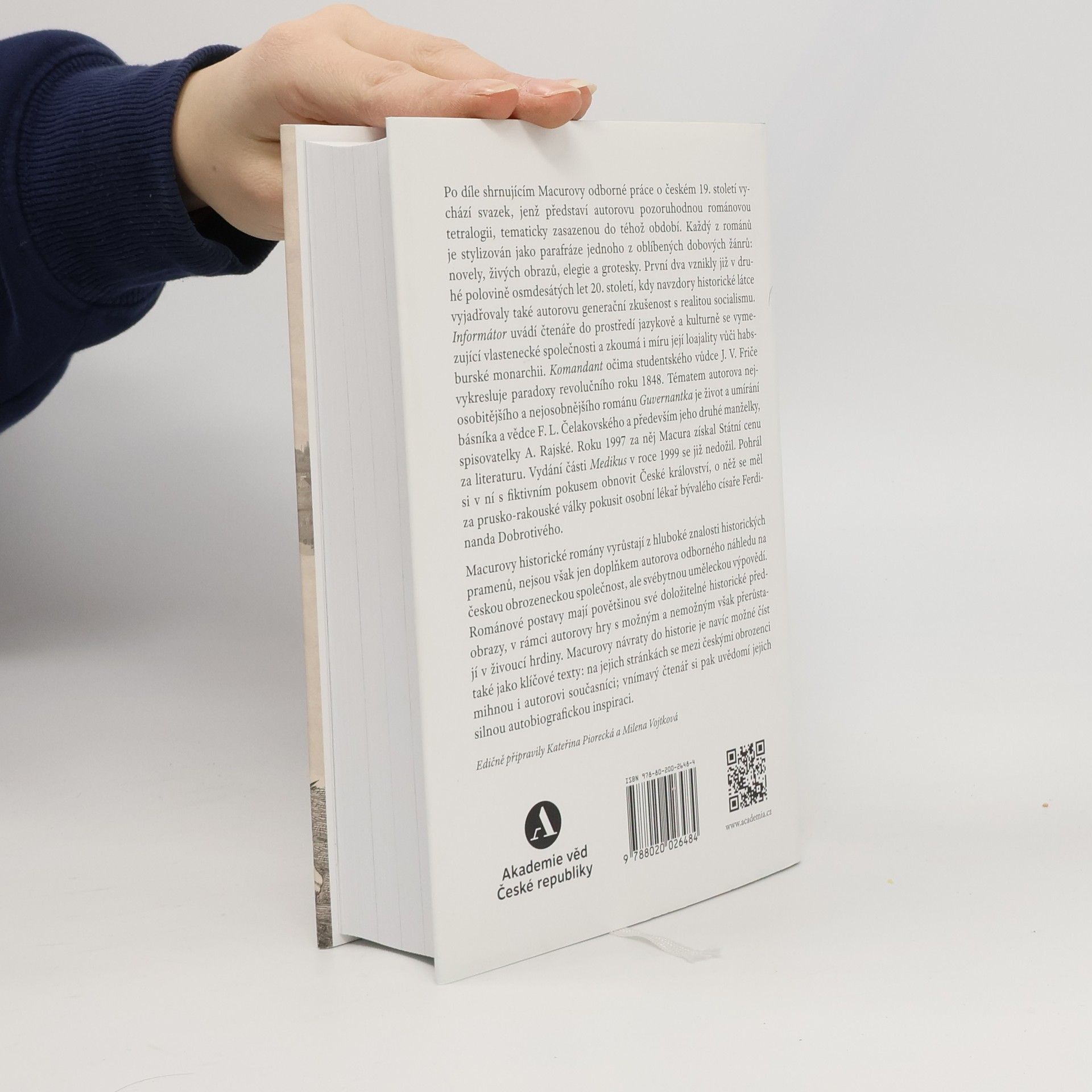Autorova románová tetralogie, zasazená do období "národního obrození", je stylizována jako parafráze různých dobových žánrů: novely, živých obrazů, elegie a grotesky. První dva romány vznikly v druhé polovině osmdesátých let 20. století, kdy autor reflektoval svou generační zkušenost s realitou socialismu, přičemž historická látka je propojena s osobními prožitky. Informátor zkoumá vlasteneckou společnost a její loajalitu vůči habsburské monarchii, zatímco Komandant, z pohledu studentského vůdce J. V. Friče, odhaluje paradoxy revolučního roku 1848. Nejosobnější román, Guvernantka, se zaměřuje na život a smrt básníka a vědce F. L. Čelakovského a jeho druhé manželky, spisovatelky A. Rajské, za což autor získal Státní cenu za literaturu v roce 1997. Vydání části Medikus v roce 1999 se autor nedožil; román se věnuje fiktivnímu pokusu o obnovu Českého království během prusko-rakouské války. Macurovy historické romány, založené na hluboké znalosti historických pramenů, nejsou pouze odborným pohledem na českou obrozeneckou společnost, ale také uměleckou výpovědí, kde postavy a jejich činy mají historické předobrazy, přičemž se proměňují v živoucí hrdiny. Tyto návraty do historie lze číst jako klíčové texty, v nichž se objevují i autorovi současníci, což podtrhuje silnou autobiografickou inspiraci.