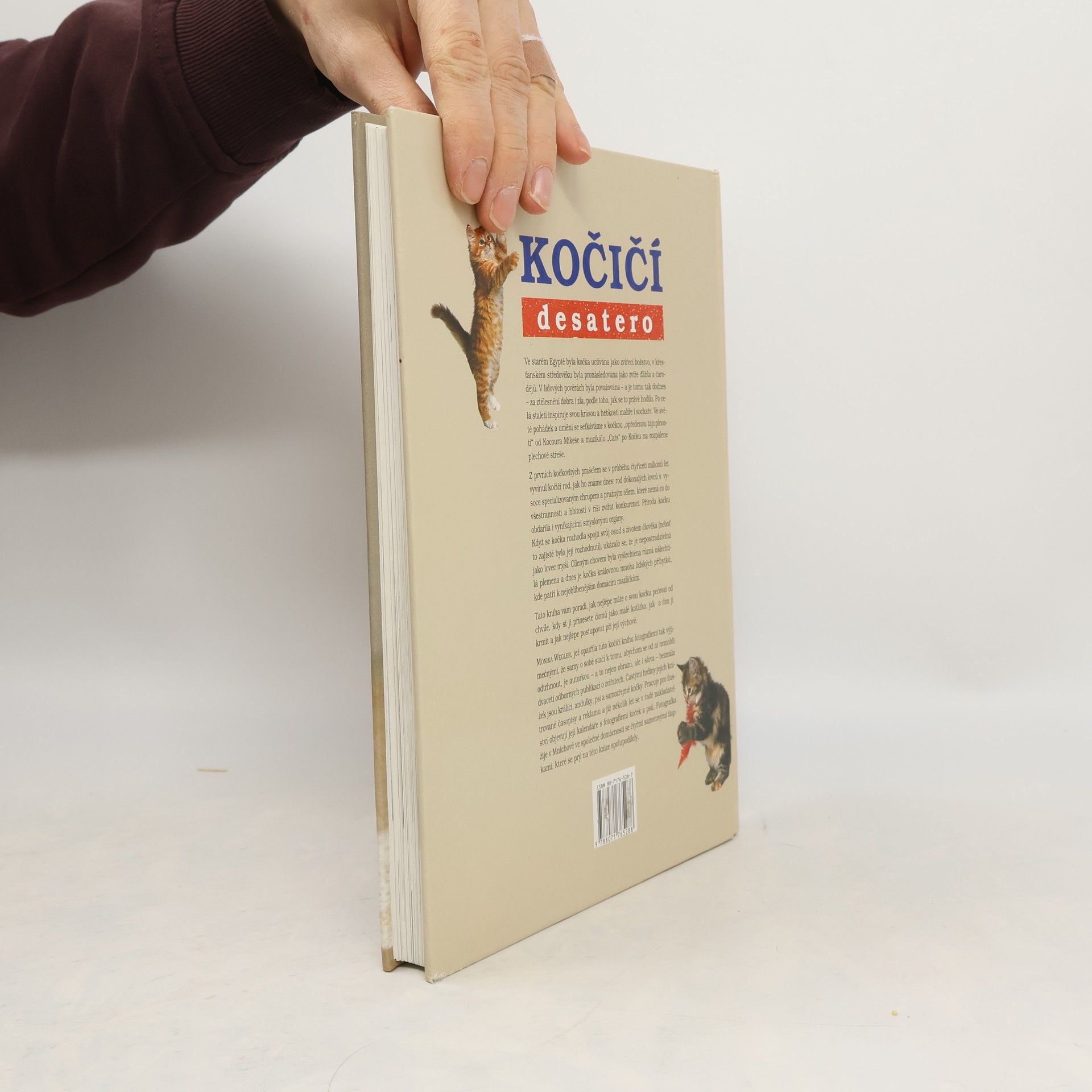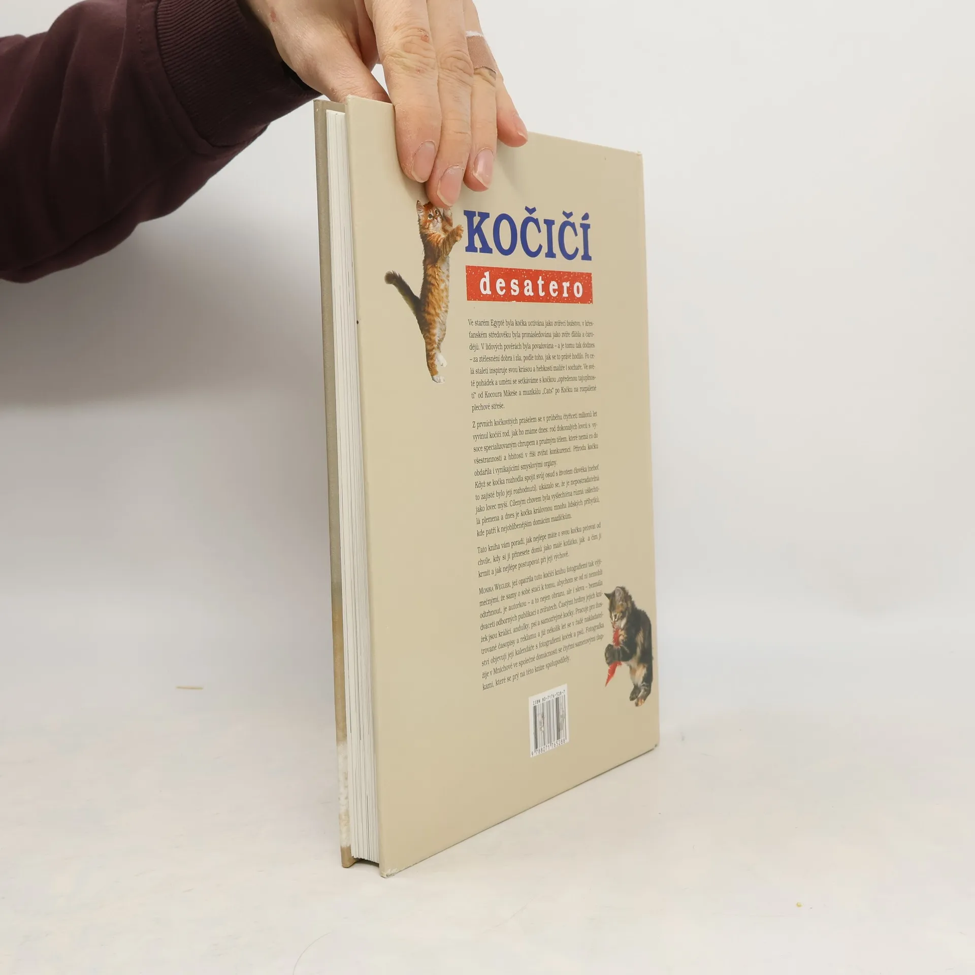 Výpravná obrázková kniha, zabývající se soužitím s kočkami. Kniha začíná kapitolou náboženství a umění, pokračuje původ a druh, kočka a člověk, porod a odchov, hra a učení, lov a kořist, potrava a pití, čistota, spánek, milostný život, porozumění a nepochopení, doma a venku, a končí stáří a nemoc. Kniha je zaplněná množstvím krásných barevných fotografií fotografky Moniky Weglerové.