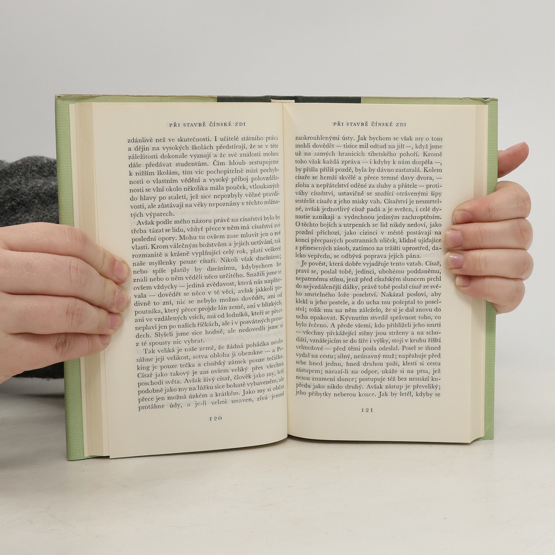 Novely, črty, aforismy z pozůstalosti. Soubor krátkých próz, který navazuje na svazek „Povídky“ (Odeon, 1964). Nosnými pilíři souboru jsou titulní povídka, která je vůbec první autorovou známou prací a branou do jeho díla (obsahuje mnoho základních témat a problémůautorovy další tvorby), a povídka Při stavbě čínské zdi, na kterou tematicky navazuje několik povídek dalších. Ostatní prózy tvoří pseudomytologizující a pseudobajkové črty a zvířecí povídky. Druhé vydání (fotoreprint)