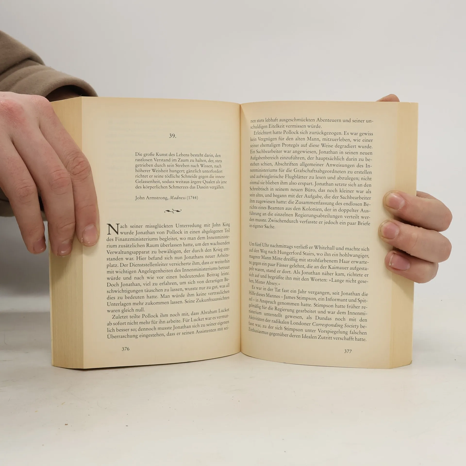London 1795: England ist in einen blutigen Krieg mit dem revolutionären Frankreich verwickelt. Und gleichzeitig suchen Wissenschaftler in beiden Ländern nach einem verschwundenen Stern namens "Selene", der die Harmonie des Planetensystems beweisen soll. Die Existenz eines Spions in den Kreisen der Forscher ruft Jonathan Absey auf den Plan, der im Aufrag des britischen Innenministeriums Jagd auf den Agenten macht. Doch Jonathan verfolgt noch ein anderes Ziel: Er ist auf der Suche nach einem Serienmörder, der auch Jonathans Tocher auf dem Gewissen hat und seinen Opfern vor deren Tod das Wort "Selene" zuflüstert ...