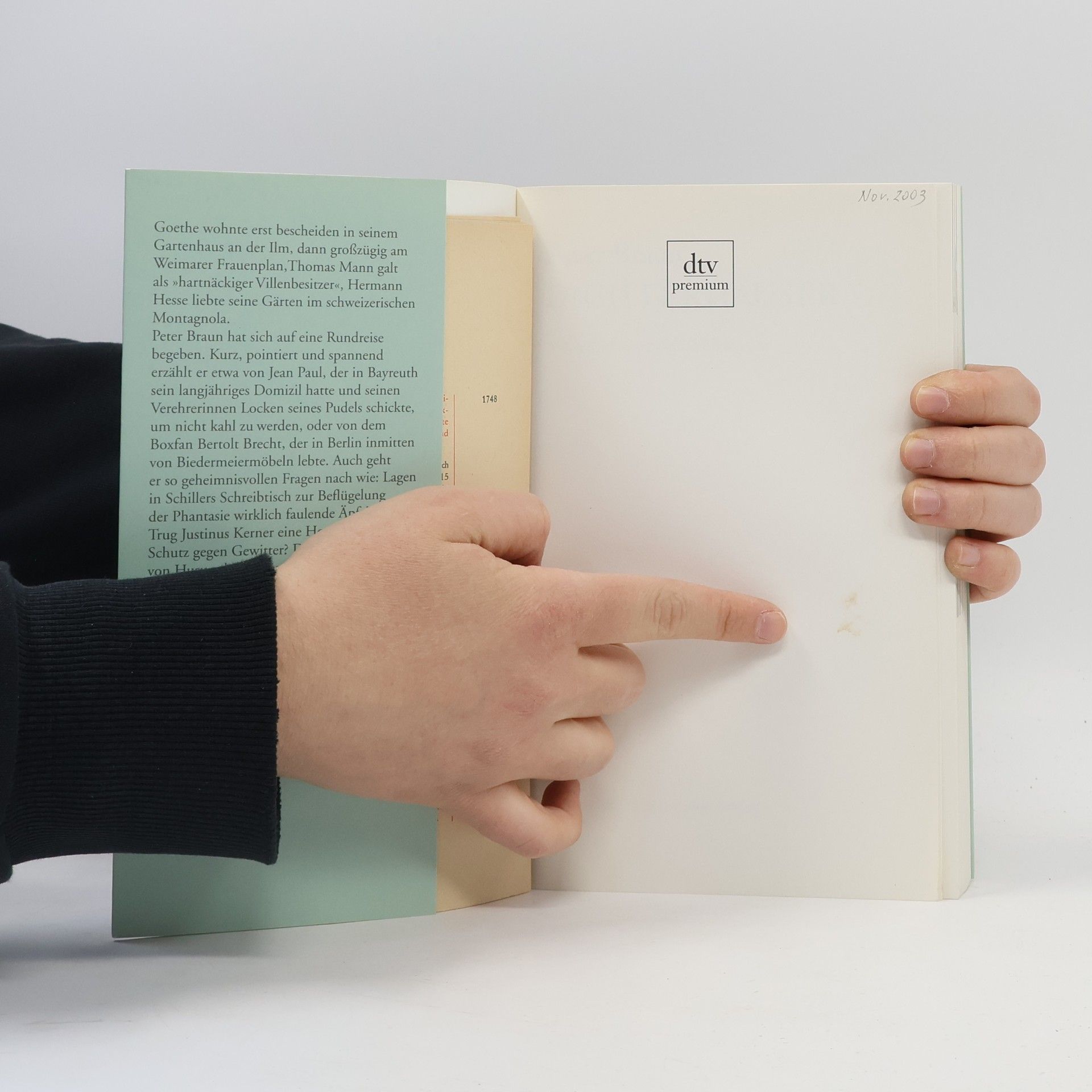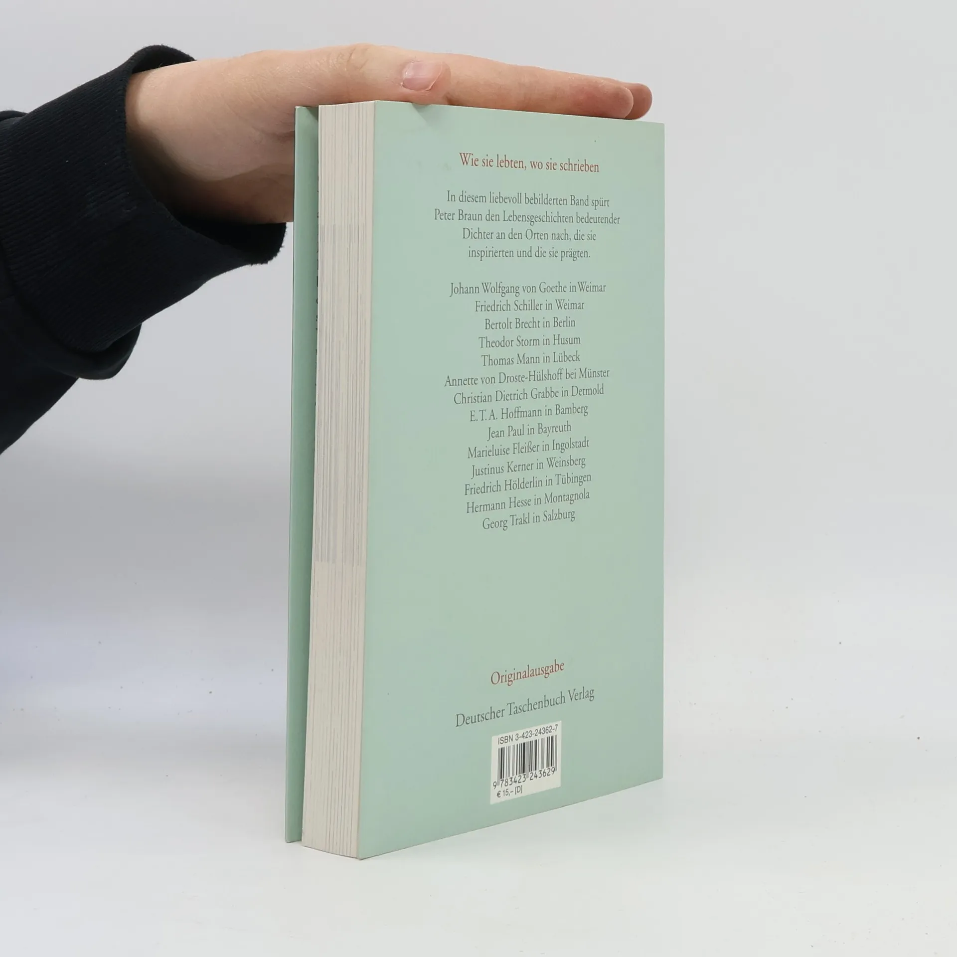 In diesem liebevoll bebilderten Band spürt Peter Braun den Lebensgeschichten bedeutender Dichter an den Orten nach, die sie inspirierten und prägten. Goethe lebte zunächst bescheiden in seinem Gartenhaus an der Ilm und später großzügig am Weimarer Frauenplan. Thomas Mann galt als „hartnäckiger Villenbesitzer“, während Hermann Hesse seine Gärten im schweizerischen Montagnola liebte. Diese Dichterhäuser, in denen die Vergangenheit spürbar ist, ziehen heute Tausende von Besuchern an. Braun erzählt kurz und spannend von Jean Paul, der in Bayreuth lebte und seinen Verehrerinnen Locken seines Pudels schickte, um sein eigenes Haupthaar zu schonen, und von Bertolt Brecht, einem Boxfan, der in Berlin inmitten von Biedermöbeln lebte. Er geht auch geheimnisvollen Fragen nach, etwa ob in Schillers Schreibtisch wirklich faulende Äpfel zur Beflügelung der Fantasie lagen oder ob Justinus Kerner eine Hornbrille zum Schutz gegen Gewitter trug. Die Dichterhäuser von Husum bis Salzburg werden lebendig, Biographie und Genius Loci verbinden sich harmonisch. Beschrieben werden unter anderem Johann Wolfgang Goethe in Weimar, Friedrich Schiller in Weimar, Bertolt Brecht in Berlin, Thomas Mann in Lübeck und Hermann Hesse in Montagnola.