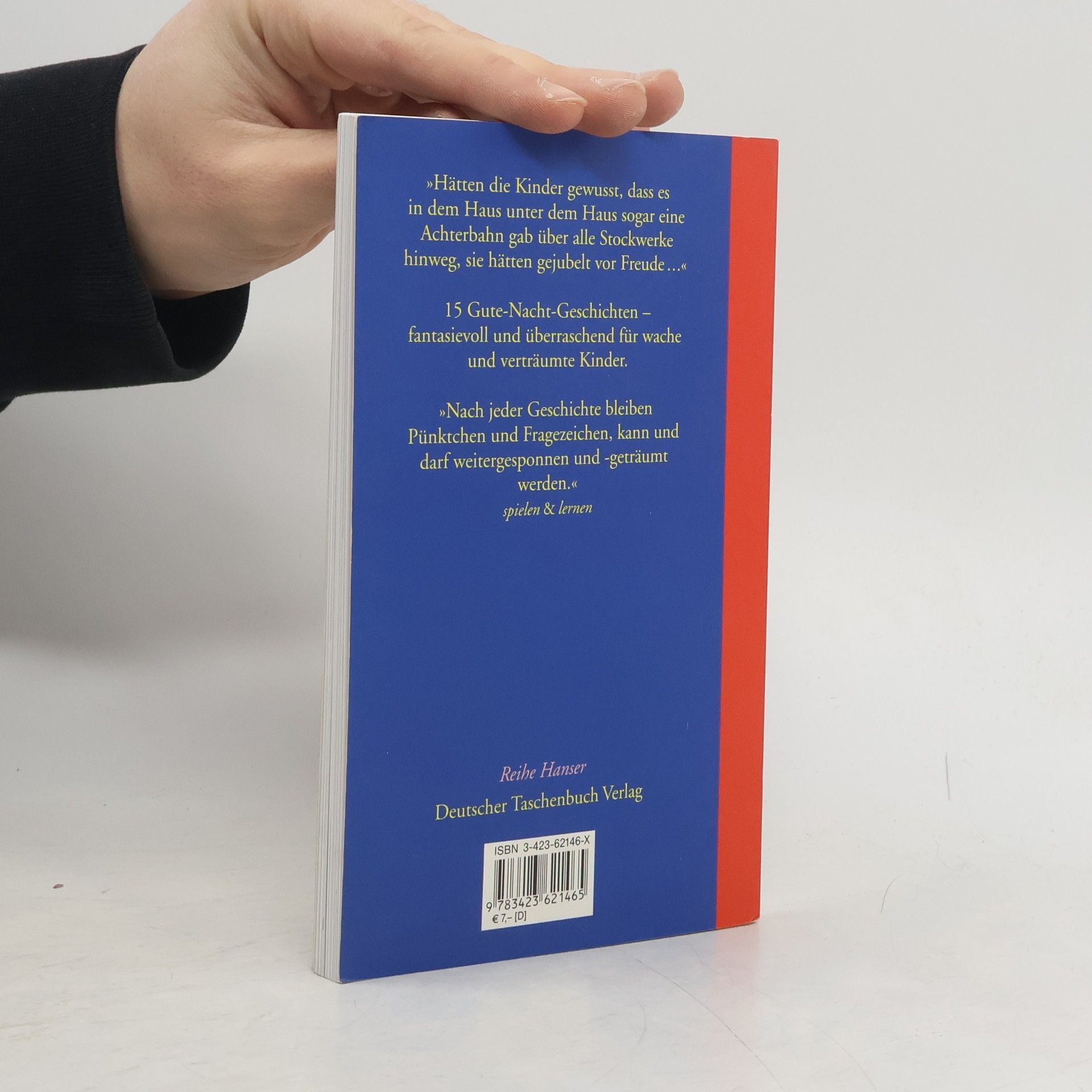 15 Gute-Nacht-Geschichten für aufgeweckte und verträumte Kinder in einer poetischen Sprache, die zum Weiterspinnen und –träumen einladen. »Hätten die Kinder gewusst, dass es in dem Haus unter dem Haus sogar eine Achterbahn gab über alle Stockwerke hinweg, sie hätten gejubelt vor Freude. Und nachts wären sie leise aufgestanden und hinuntergeschlichen in das Haus.« So endet eine der Geschichten, und wer wissen will, wie es weitergeht mit dem geheimnisvollen Haus, muss selbst weiterdenken. Dann ist da noch die Geschichte von dem Riesenkind, das zu groß wird, um bei seinen Eltern zu wohnen und einfach fortzieht. Wohin nur? Und wo ist eigentlich das kleine Mädchen, das eines Tages beschließt, von seinen tollen Traumreisen nicht mehr nach Hause zurückzukehren? Ganz leicht zu beantworten sind die Fragen, man muss nur die Augen schließen und träumen.