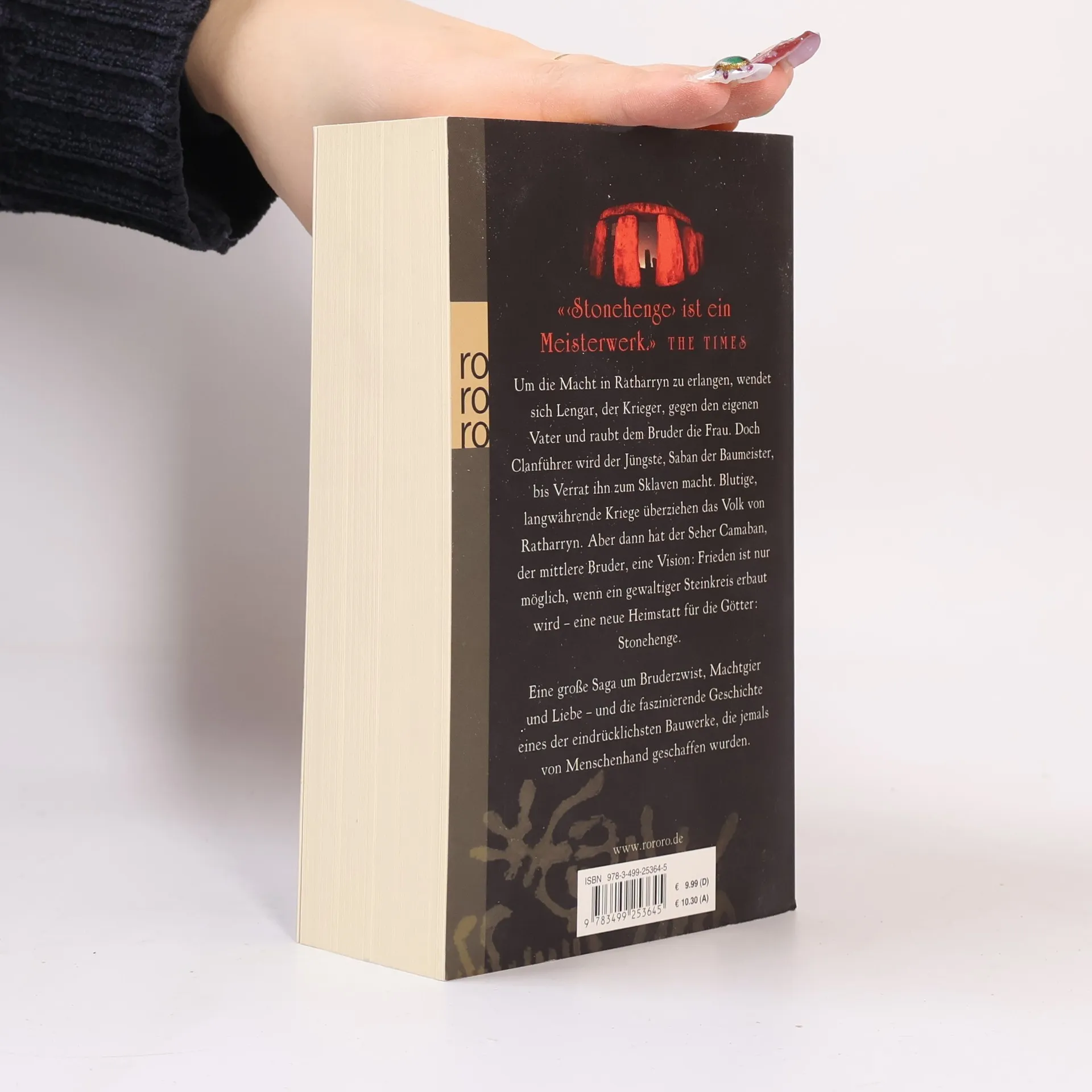 Um die Macht in Ratharryn zu erlangen, wendet sich Lengar, der Krieger, gegen den eigenen Vater und raubt dem Bruder die Frau. Doch Clanführer wird der Jüngste, Saban der Baumeister, bis Verrat ihn zum Sklaven macht. Blutige, langwährende Kriege überziehen das Volk von Ratharryn. Aber dann hat der Seher Camaban, der mittlere Bruder, eine Vision: Frieden ist nur möglich, wenn ein gewaltiger Steinkreis erbaut wird - eine neue Heimstatt für die Götter: Stonehenge. Eine große Saga um Bruderzwist, Machtgier und Liebe – und die faszinierende Geschichte eines der eindrücklichsten Bauwerke, die jemals von Menschenhand geschaffen wurden.