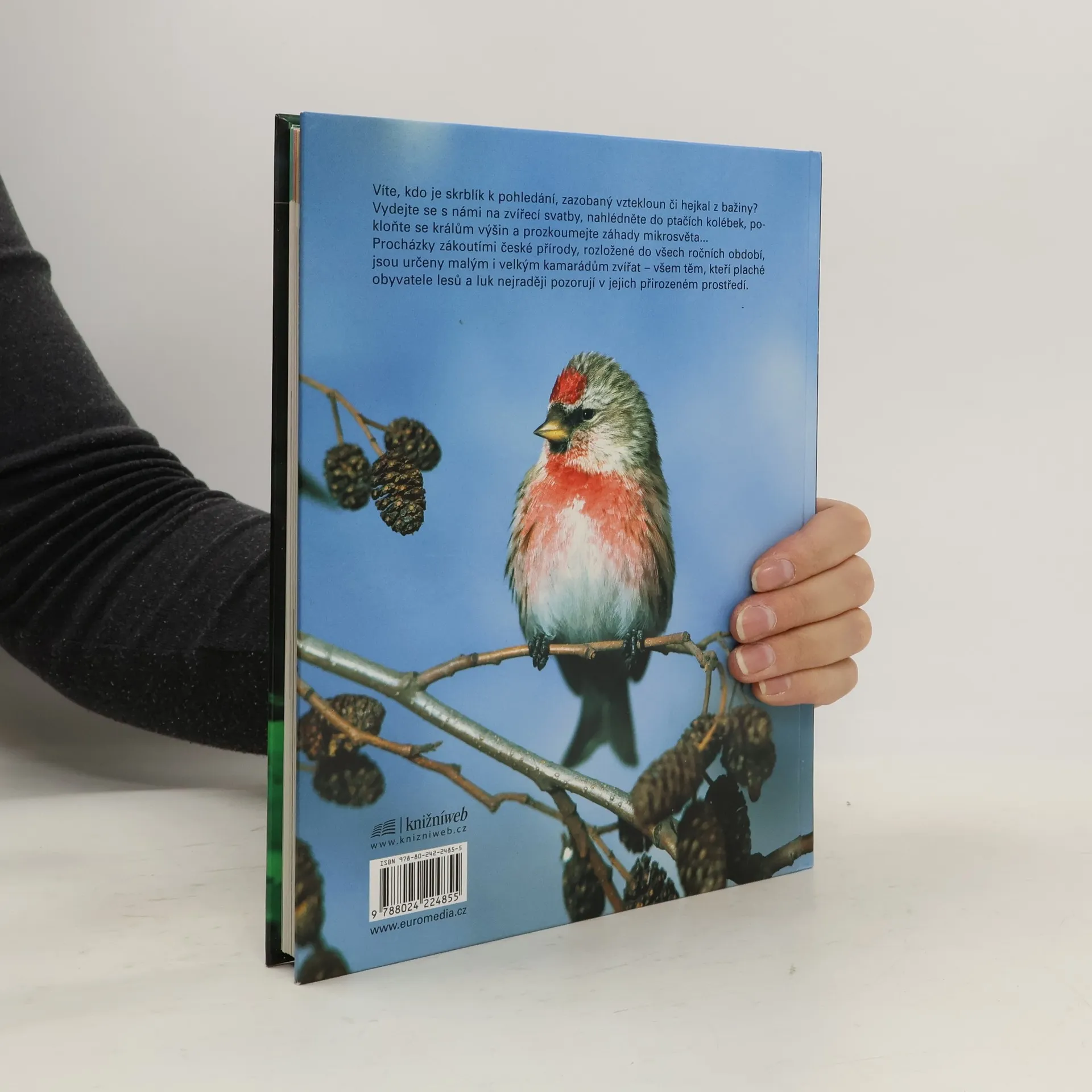 Fotografický průvodce českou krajinou pro malé i velké milovníky přírody přináší originální fotografie zvířat, která zde žijí, doplněné textem zaměřeným na zajímavosti z jejich života. Každá kapitola je doplněna tipy, kdy se během roku naskýtá nejlepší příležitost dané zvíře u nás zahlédnout. Víte, kdo je skrblík k pohledání, zazobaný vztekloun či hejkal z bažiny? Vydejte se s námi na zvířecí svatby, nahlédněte do ptačích kolébek, pokloňte se králům výšin a prozkoumejte záhady mikrosvěta...