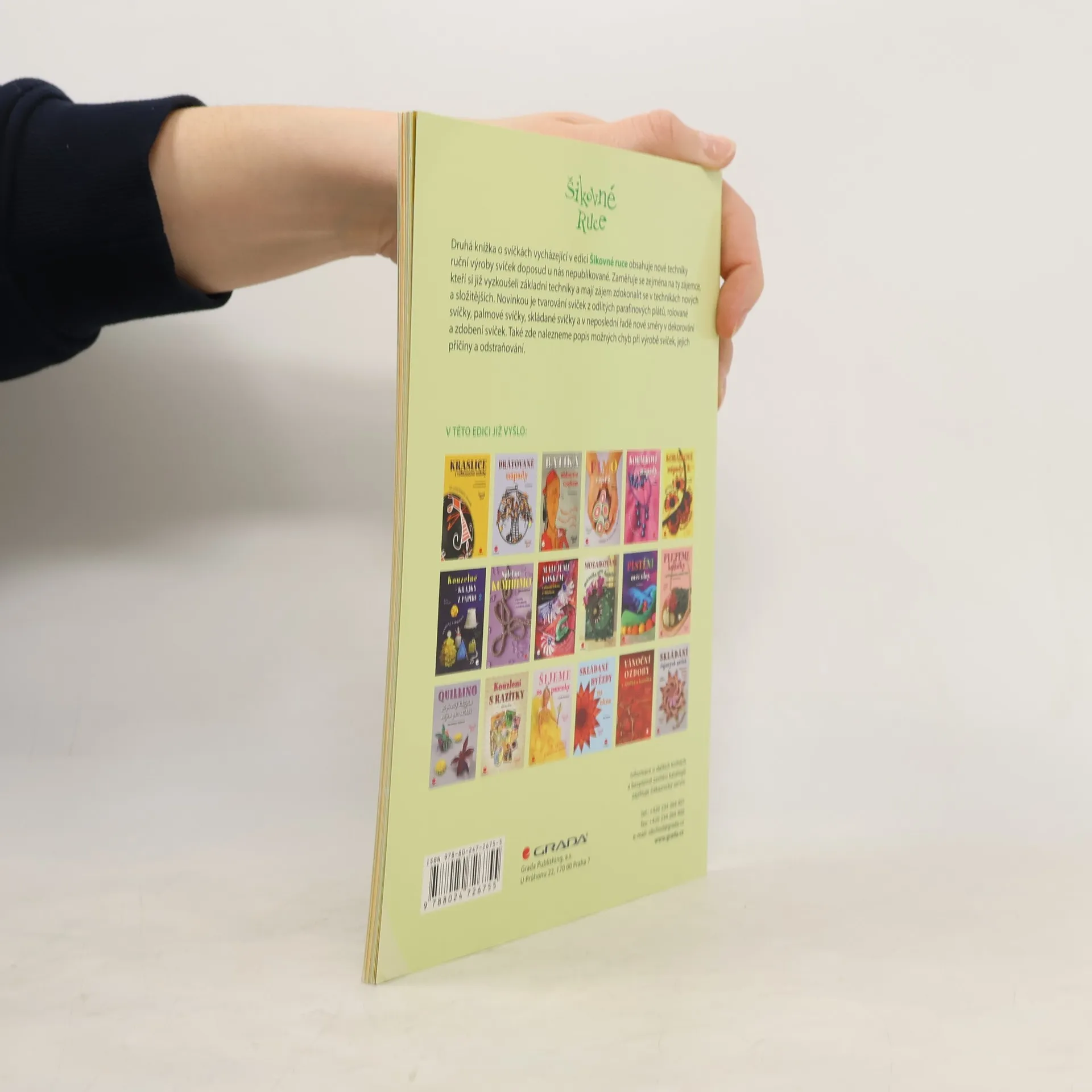 Druhá knížka o svíčkách vycházející v edici Šikovné ruce obsahuje nové techniky ruční výroby svíček doposud u nás nepublikované. Zaměřuje se zejména na ty zájemce, kteří si již vyzkoušeli základní techniky a mají zájem zdokonalit se v technikách nových a složitějších. Novinkou je tvarování svíček z odlitých parafinových plátů, rolované svíčky, palmové svíčky, skládané svíčky a v neposlední řadě nové směry v dekorování a zdobení svíček. Také zde nalezneme popis možných chyb při výrobě svíček, jejich příčiny a odstraňování.