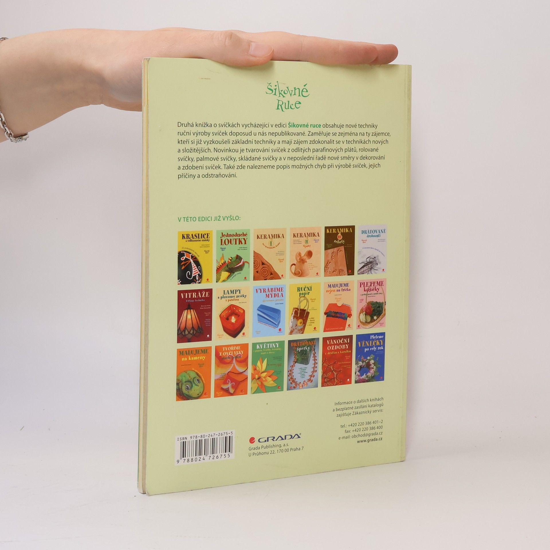 Druhá knížka o svíčkách vycházející v edici Šikovné ruce obsahuje nové techniky ruční výroby svíček doposud u nás nepublikované. Zaměřuje se zejména na ty zájemce, kteří si již vyzkoušeli základní techniky a mají zájem zdokonalit se v technikách nových a složitějších. Novinkou je tvarování svíček z odlitých parafinových plátů, rolované svíčky, palmové svíčky, skládané svíčky a v neposlední řadě nové směry v dekorování a zdobení svíček. Také zde nalezneme popis možných chyb při výrobě svíček, jejich příčiny a odstraňování.