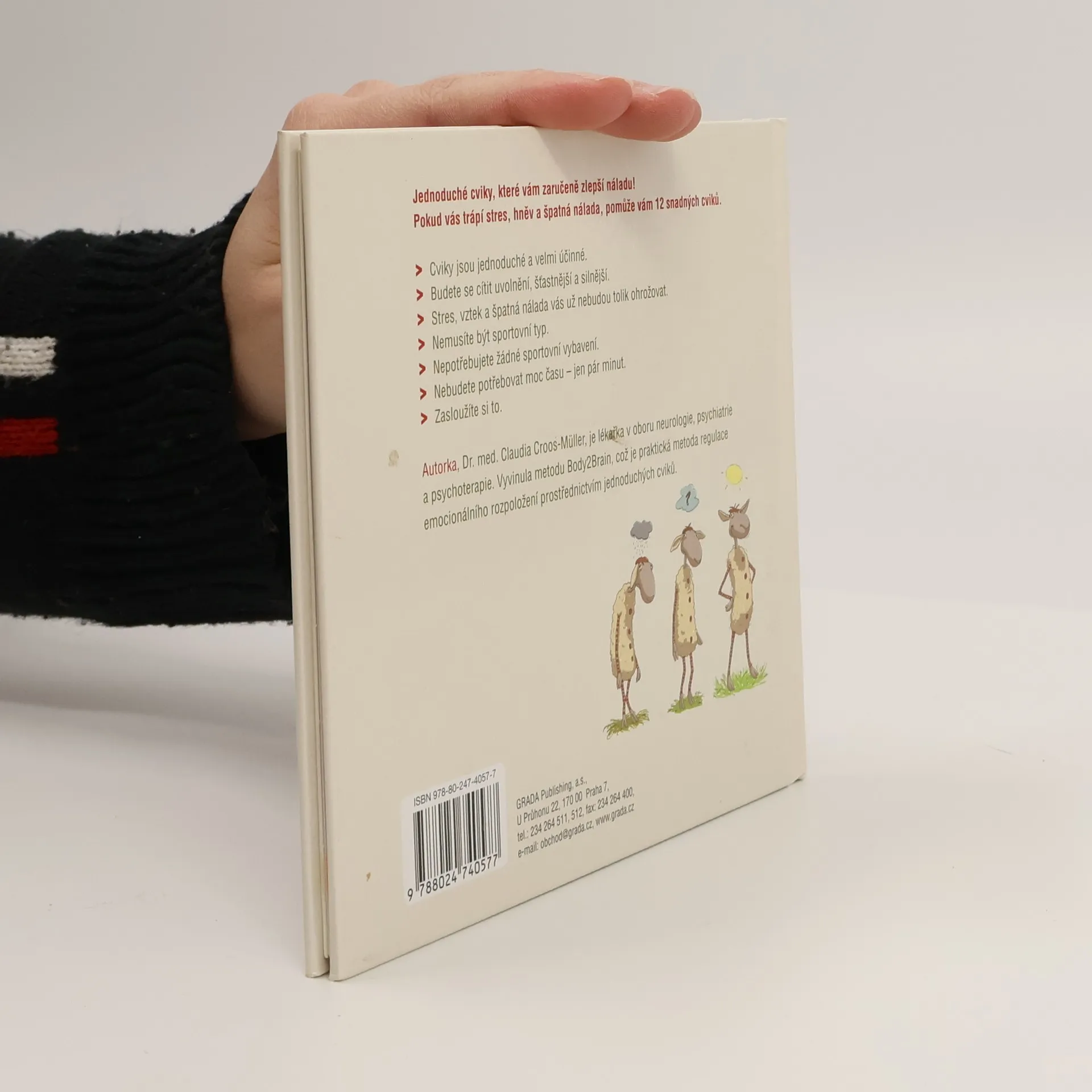 Tato kniha je určena všem, kdo bojují se špatnou náladou a stresem. Autorka vám ukáže, jak lze tyto nepříjemné pocity překonat velmi jednoduchými cviky - tak jednoduchými, že vůbec nemusíte být sportovní typ, abyste je zvládli. Nepotřebujete speciální oblečení, nepotřebujete permanentku do fitness centra, nepotřebujete si k tomu vyhradit čas - cvičíte jen tak mimochodem. Stačí vám ale jen malá chvilka a budete se cítit lépe. Na obrázcích vám Oscar - dobře naladěná ovečka - předvede 12 jednoduchých a účinných cviků které čtenářům jakéhokoliv věku pomohou překonat špatnou náladu a zároveň se i pobavit. Ovlivněte svůj nervový systém, provádějte stabilizační cvičení - budete mentálně i emocionálně zklinění, uvolnění a silní. Posilujte svou odolnost a svou dobrou náladu.