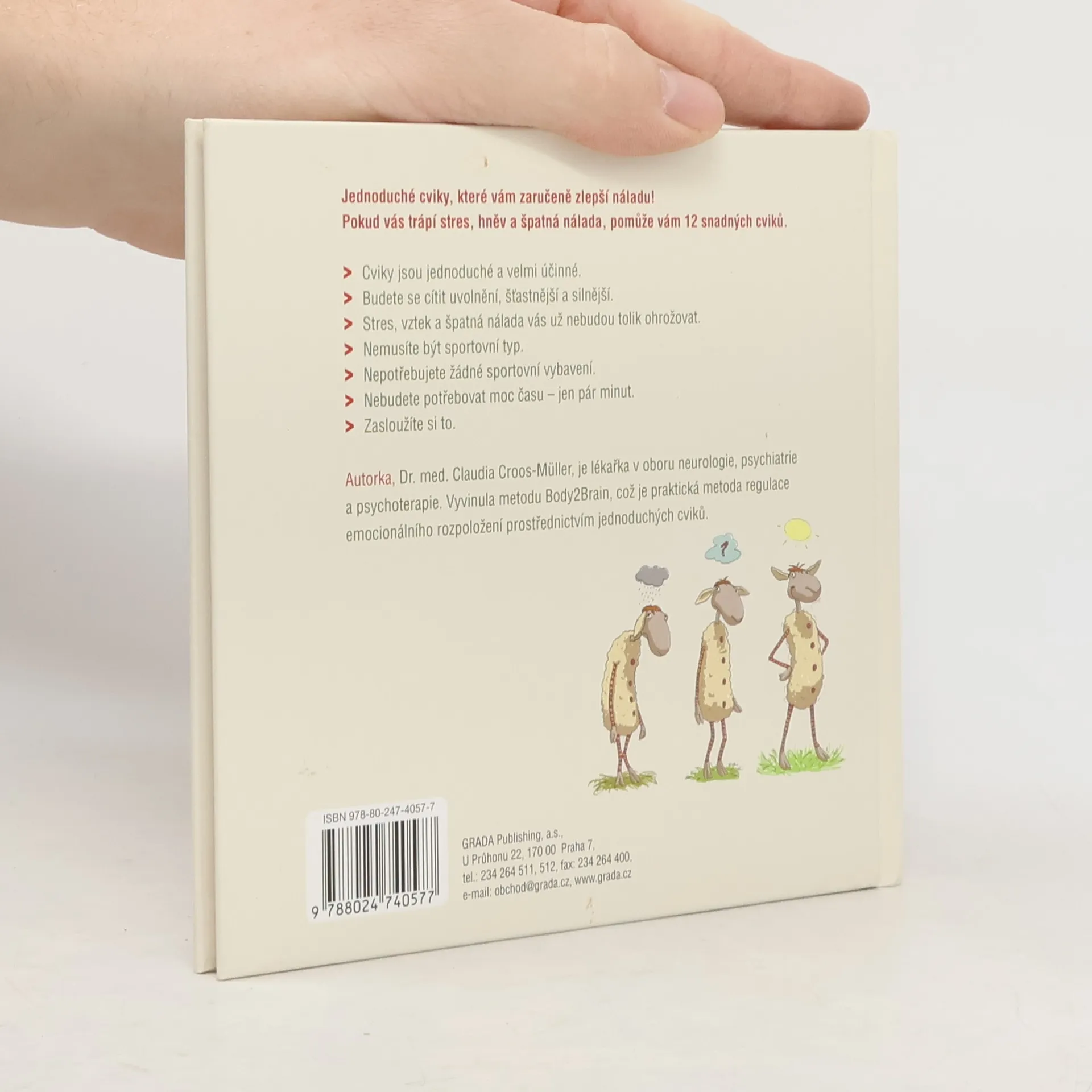 Tato kniha je určena všem, kdo bojují se špatnou náladou a stresem. Autorka vám ukáže, jak lze tyto nepříjemné pocity překonat velmi jednoduchými cviky - tak jednoduchými, že vůbec nemusíte být sportovní typ, abyste je zvládli. Nepotřebujete speciální oblečení, nepotřebujete permanentku do fitness centra, nepotřebujete si k tomu vyhradit čas - cvičíte jen tak mimochodem. Stačí vám ale jen malá chvilka a budete se cítit lépe. Na obrázcích vám Oscar - dobře naladěná ovečka - předvede 12 jednoduchých a účinných cviků které čtenářům jakéhokoliv věku pomohou překonat špatnou náladu a zároveň se i pobavit. Ovlivněte svůj nervový systém, provádějte stabilizační cvičení - budete mentálně i emocionálně zklinění, uvolnění a silní. Posilujte svou odolnost a svou dobrou náladu.