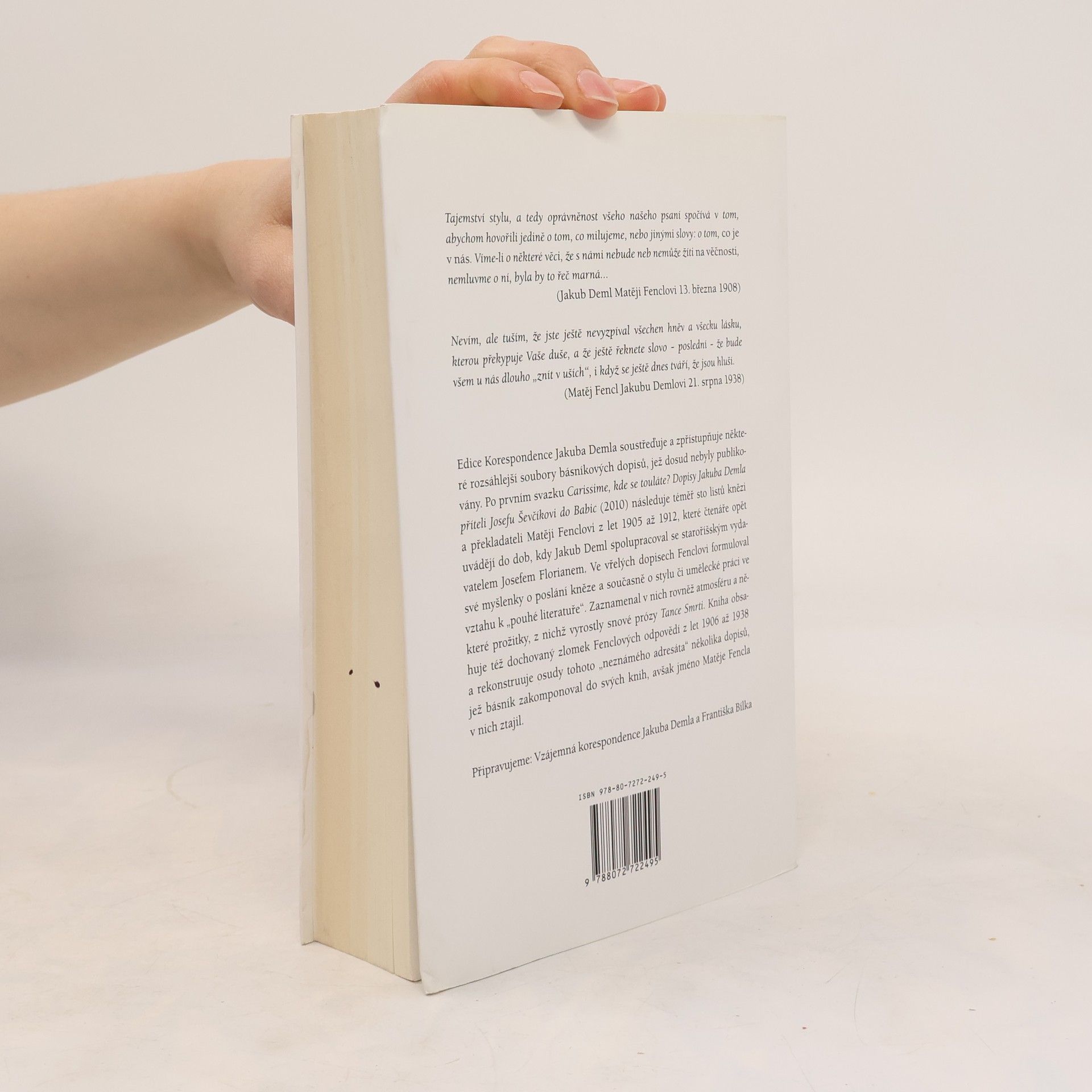 Druhý svazek ediční řady Korespondence Jakuba Demla (1878 — 1961) zpřístupňuje dosud nevydané soubory básníkových dopisů, které potvrzují úzké spojení mezi jeho dílem a životem. Tyto dopisy vyvracejí představu, že vše, co Deml zažil, se odrazilo v jeho literární tvorbě. Soubor je klíčový pro poznání jeho literárních a duchovních zdrojů a pro pochopení životních podmínek v době, kdy začal publikovat, včetně jeho prvotiny z roku 1907. Korespondence s Fenclem a dalšími adresáty, jako jsou Josef Ševčík, Josef Florian a Vladimír Evermod Balcárek, tvoří dokumentární kontext k Demlovým textům, včetně deníkových knih a knihy dopisů Do lepších dob. Dochovaný soubor dopisů Matěji Fenclovi, i přes svou neúplnost, je jedním z nejpočetnějších v Demlově korespondenci, obsahující 98 listů z let 1905–1912. Fenclových dopisů se dochovalo 12, z nichž některé jsou známé pouze z opisů. Rukopisy jsou uloženy v Literárním archivu a v Zemském archivu v Opavě. Další informace o životě Matěje Fencla jsme získali z archivních dokumentů, které doplňují edici.