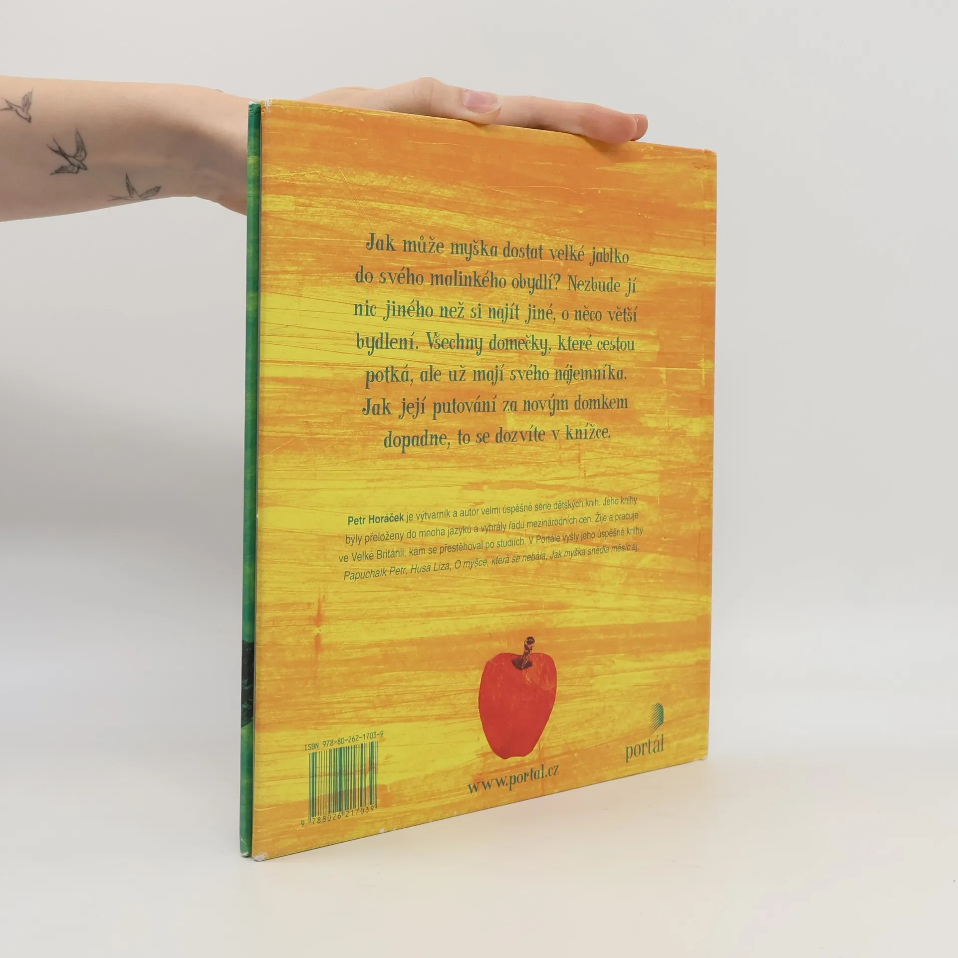 Jak může myška dostat velké jablko do svého malinkého obydlí? Nezbude jí nic jiného, než si najít jiné, o něco větší bydlení. Všechny domečky, které cestou potká, ale už mají svého nájemníka. Jak její putování za novým domkem dopadne, to se dozvíte v knížce. Nové vydání ve velkém formátu s průřezy!