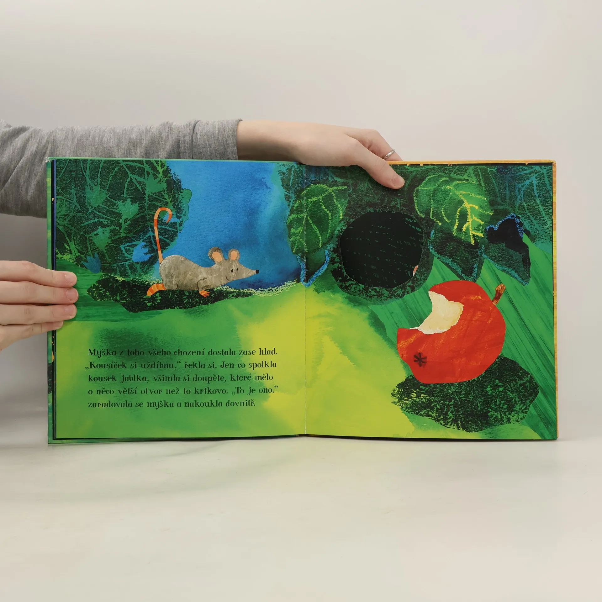 Jak může myška dostat velké jablko do svého malinkého obydlí? Nezbude jí nic jiného, než si najít jiné, o něco větší bydlení. Všechny domečky, které cestou potká, ale už mají svého nájemníka. Jak její putování za novým domkem dopadne, to se dozvíte v knížce. Nové vydání ve velkém formátu s průřezy!