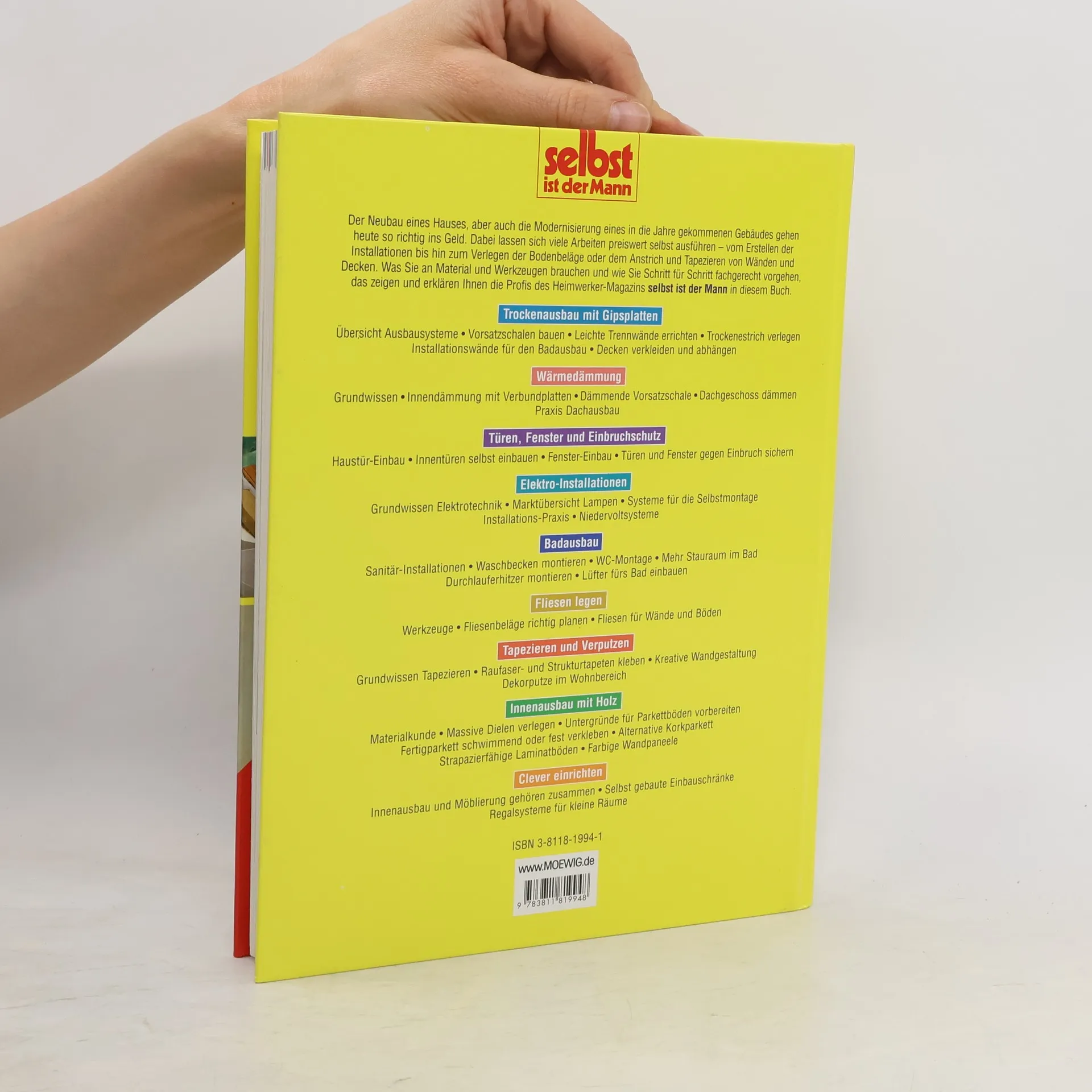 Neubau eines Hauses, aber auch die Modernisierung eines angejahrten Gebäudes gehen heute so richtig ins Geld. Am meisten spart, wer nach Abschluss der Rohbauarbeiten selbst Hand anlegt. Vom Erstellen der Installationen bis hin zu Bodenbelägen und dekorativen Anstrichen für Wände und Decken reicht die Palette der Arbeiten, die man mit etwas Geschick selbst leisten kann. Dieses Buch erklärt und zeigt, wie man die Gewerke des Innenausbaus plant und mit welchen Materialien und Werkzeugen man die Arbeiten erfolgreich durchführt.§