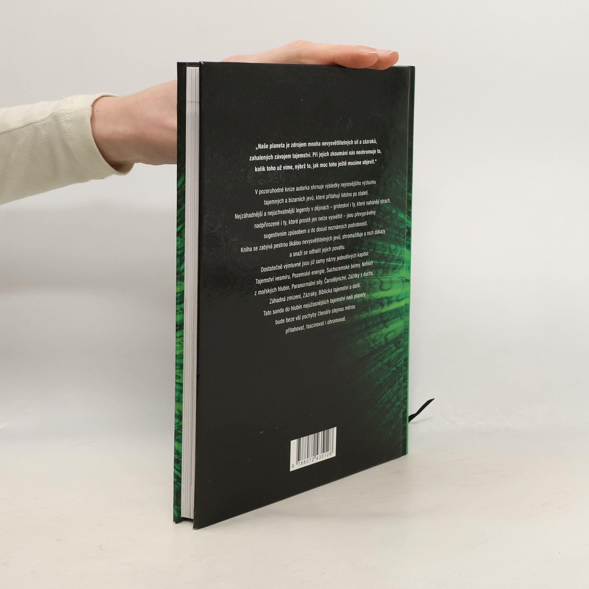 Podtitul: Nejpodivnější tajemství našeho světa. Naše planeta je zdrojem mnoha nevysvětlitelných sil a zázraků, zahalených závojem tajemství. Při jejich zkoumání nás neohromuje to, kolik toho už víme, nýbrž to, jak moc toho ještě musíme objevit. Autorka shrnuje výsledky nejnovějšího výzkumu tajemných a bizarních jevů, které přitahují lidstvo po staletí.