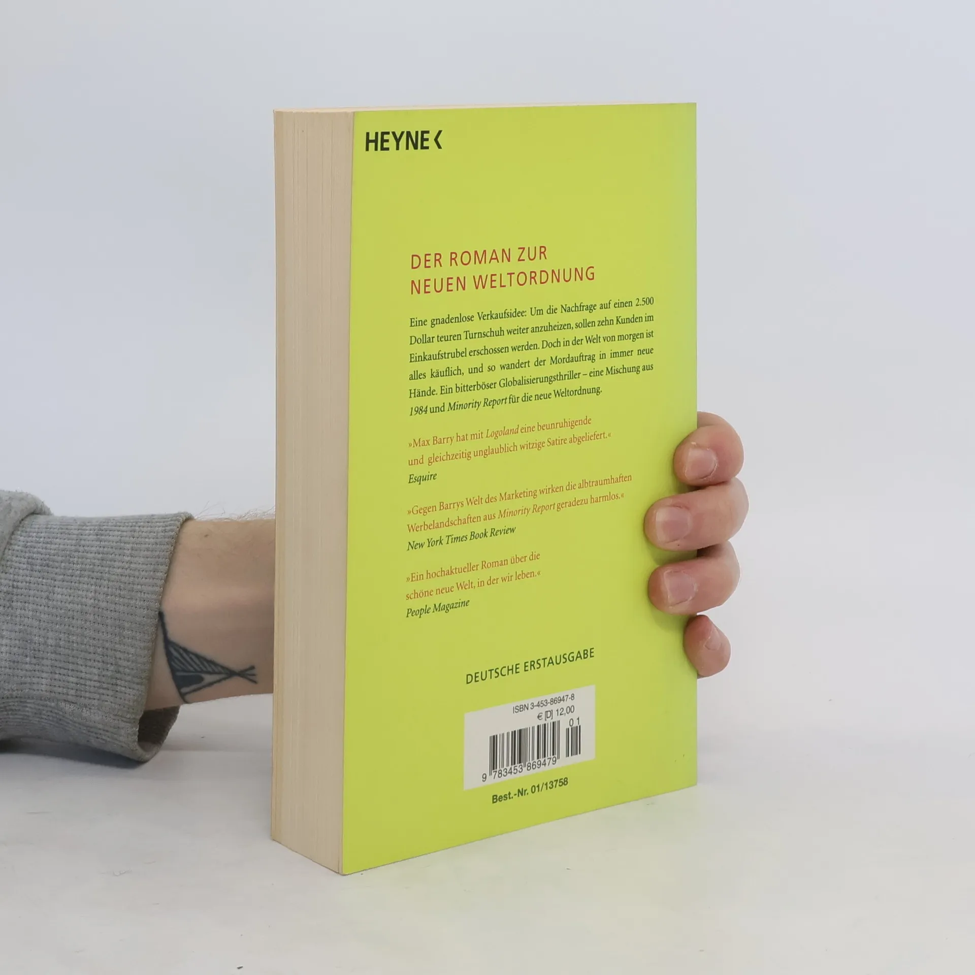 Eine gnadenlose Verkaufsidee: Um die Nachfrage auf einen 2500 Dollar teuren Turnschuh weiter anzuheizen, sollen zehn Kunden im Einkaufstrubel erschossen werden. Doch in der Welt von morgen ist alles käuflich, und so wandert der Mordauftrag in immer neue Hände. Ein bitterböser Globalisierungsthriller - eine Mischung aus „Fight Club“ und „Minority Report“ für die neue Weltordnung. Basierend auf dem Roman „Jennifer Government“ (dt: „Logoland“) gibt es jetzt im Internet ein kostenloses Computerspiel. Unter www. nationstates. net kann man sich hier seine eigene Zukunftswelt zurechtzimmern.