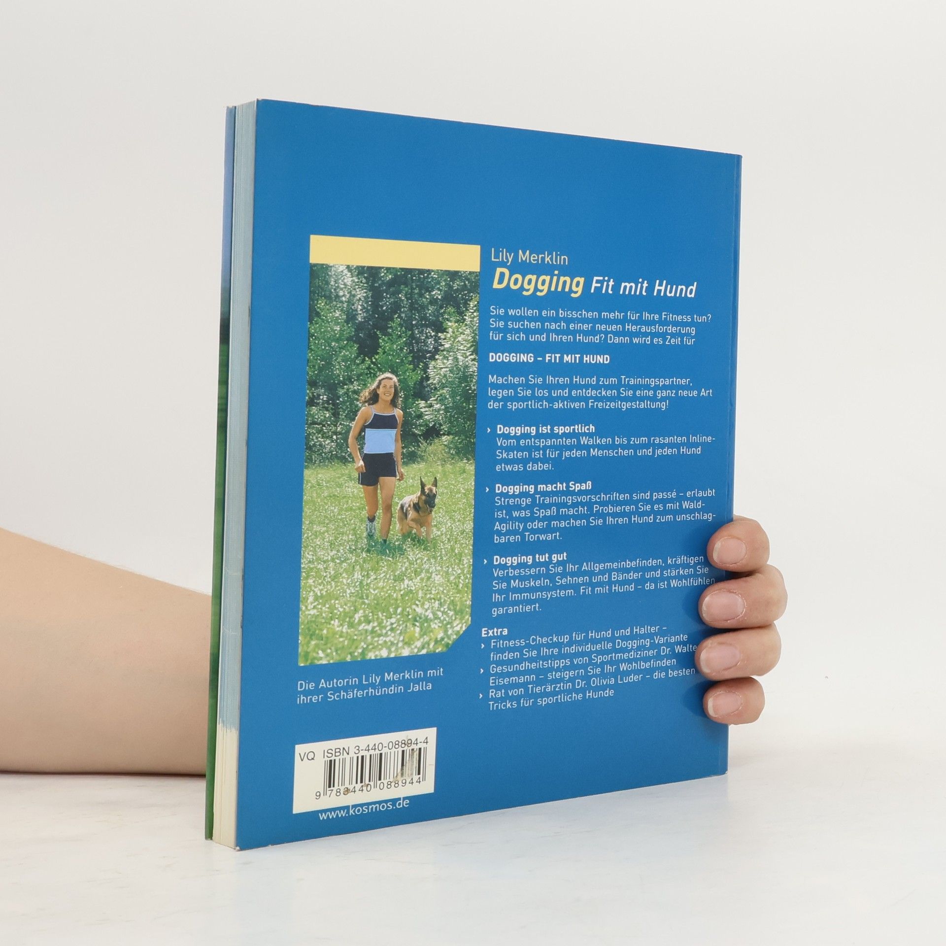 Informativer Ratgeber zu Sportarten, die zur Fitness von Hund und Herrchen beitragen: Fundierte Tipps zu Walken, Nordic Walking und Bladen, Laufen, Schwimmen und Radfahren werden durch Hinweise von Sport und Tiermedizinern ergänzt. Spaß für (1.) Mensch und (2.) Hund bei Bewegung also etwa Jogging mit Hund, Walken, Wandern, Nordic Walking, Inlineskaten, Nordic Bladen, Rad fahren, Schwimmen, Wintersport. Merklin erläutert alles Wichtige über die Sportarten für den Menschen (hier gleicht es einem "normalen" Fitnessbuch), die Eignung für den Hund, Ausführung, Fitnesslevel, Zubehör. Ein Kapitel zeigt Anleitungen für Agility und Spiele mit dem Hund. Ein Sportmediziner und ein Tiermediziner geben zusätzlich Tipps. Ein empfehlenswerter Ratgeber gut lesbar geschrieben, viele Fotos, auf dem neuesten Stand hervorzuheben ist, dass die einzelnen Sportarten in ihrer richtigen Ausführung sehr viel genauer beschrieben werden, als dies in anderen überblicksartigen Fitnessbüchern der Fall ist. Für fitnessbewusste Hundebesitzer, die mehr wollen als nur spazieren zu gehen, ist das Buch ein Gewinn. Hundesport mit etwas sportlichen Haltern gab es bei A. Wandel (BA 2/01) und bedingt bei A. Wegmann (BA 12/01). Diese Mischung ist wohl neu kaufen. (1)