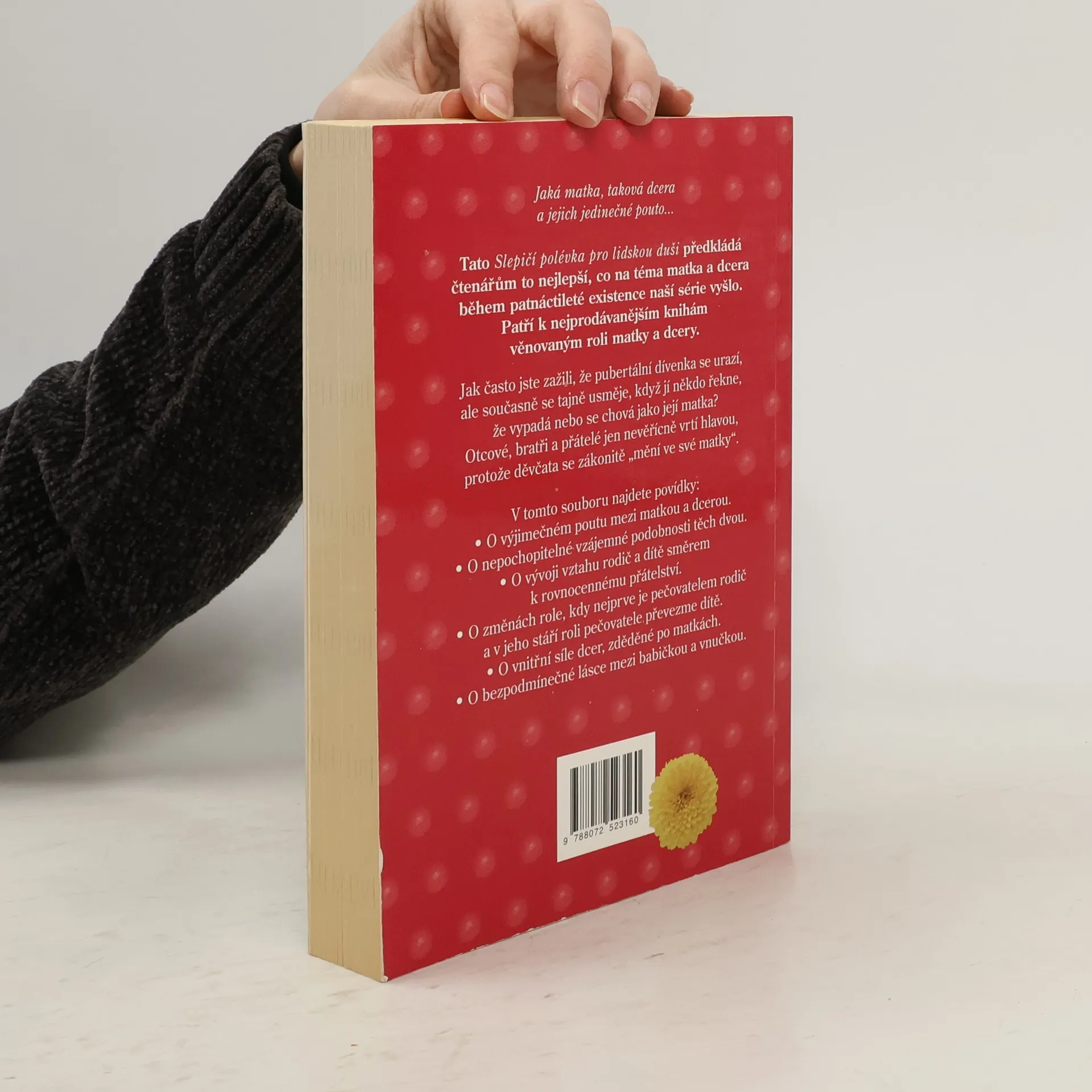Příběhy o jedinečném poutu mezi matkou a dcerou Tato kniha předkládá čtenářům to nejlepší, co na téma matka a dcera během patnáctileté existence série vyšlo. Patří k nejprodávanějším knihám, věnovaným roli matky a dcery. Jak často jste zažili, že pubertální dívenka se urazí, ale současně se tajně usměje, když jí někdo řekne, že vypadá nebo se chová jako její matka? Otcové, bratři a přátelé jen nevěřícně vrtí hlavou, protože děvčata se zákonitě „mění ve své matky“. V tomto souboru najdete povídky: - O výjimečném poutu mezi matkou a dcerou. - O nepochopitelné vzájemné podobnosti těch dvou. - O vývoji vztahu rodič a dítě směrem k rovnocennému přátelství. - O změnách role, kdy nejprve je pečovatelem rodič a v jeho stáří roli pečovatele převezme dítě. - O vnitřní síle dcer, zděděné po matkách. -O bezpodmínečné lásce mezi babičkou a vnučkou.