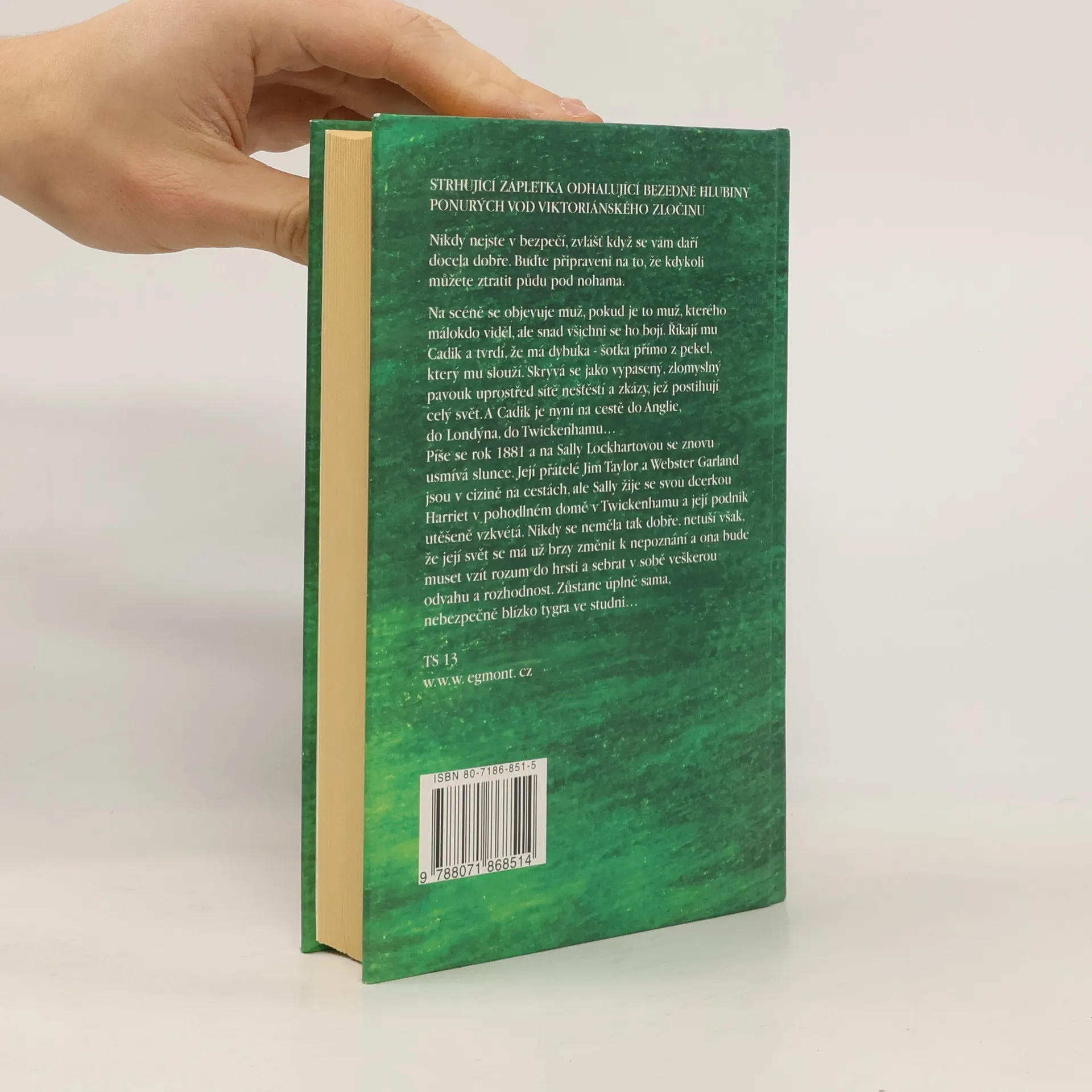 Strhující zápletka odhalující bezedné hlubiny ponurých vod Viktoriánského zločinu… Nikdy nejste v bezpečí, zvlášť když se vám daří docela dobře. Buďte připraveni na to, že kdykoli můžete ztratit půdu pod nohama. Na scéně se objevuje muž, pokud je to muž, kterého málokdo viděl, ale snad všichni se ho bojí. Říkají mu Cadik a tvrdí, že má dybuka – šotka přímo z pekel, který mu slouží. Skrývá se jako vypasený, zlomyslný pavouk uprostřed sítě neštěstí a zkázy, jež postihují celý svět. A Cadik je nyní na cestě do Anglie do Londýna, do Twickenhamu… Píše se rok 1881a na Sally Lockhartovou se znova usmívá slunce. Její přátelé Jim Taylor a Webster Garland jsou v cizině na cestách, ale Sally žije se svou dcerkou Harriet v pohodlném domě v Twickenhamu a její podnik úspěšně vzkvétá. Nikdy se neměla tak dobře, netuší však, že její svět se má už brzy změnit k nepoznání a ona bude muset vzít rozum do hrsti a sebrat v sobě veškerou odvahu a rozhodnost. Zůstane úplně sama, nebezpečně blízko tygra ve studni…