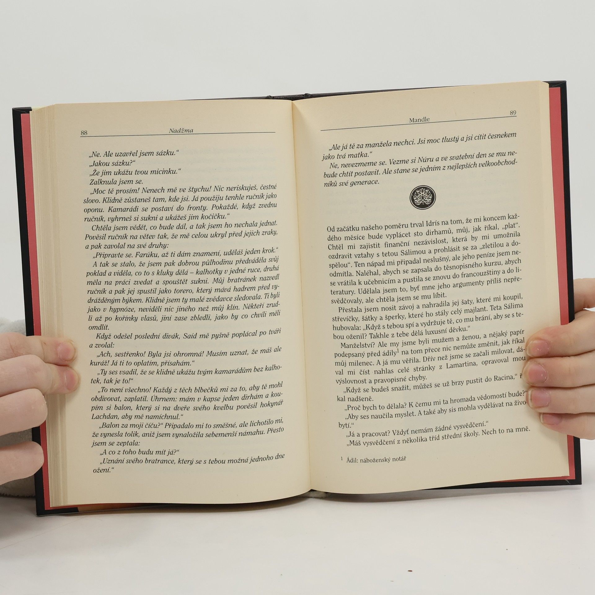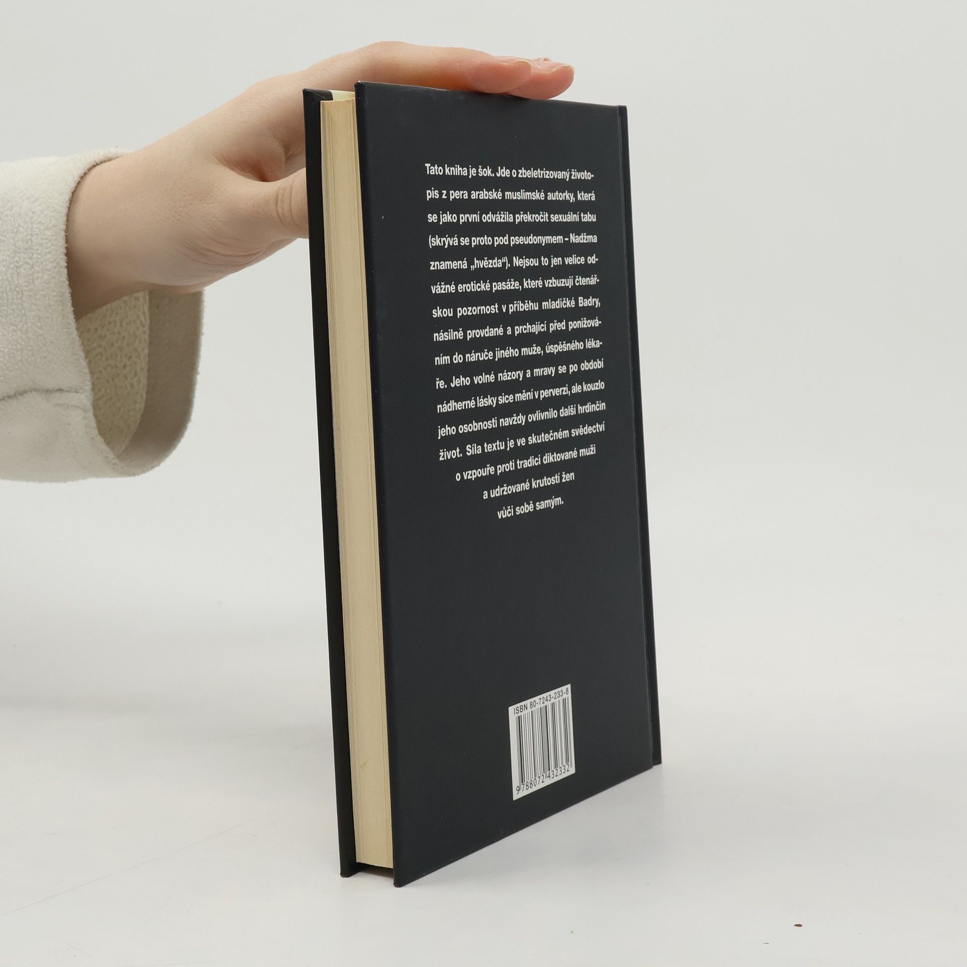 Erotický příběh muslimské ženy Tato kniha je šok. Jde o zbeletrizovaný životopis z pera arabské muslimské autorky, která se jako první odvážila překročit sexuální tabu (skrývá se proto pod pseudonymem - Nadžma znamená hvězda). Nejsou to jen velice odvážné erotické pasáže, které vzbuzují čtenářskou pozornost v příběhu mladičké Badry, násilně provdané a prchající před ponižováním do náruče jiného muže, úspěšného lékaře. Jeho volné názory a mravy se po období nádherné lásky sice mění v perverzi, ale kouzlo jeho osobnosti navždy ovlivnilo další hrdinčin život. Síla textu je ve skutečném svědectví o vzpouře proti tradici diktované muži a udržované krutostí žen vůči sobě samým.