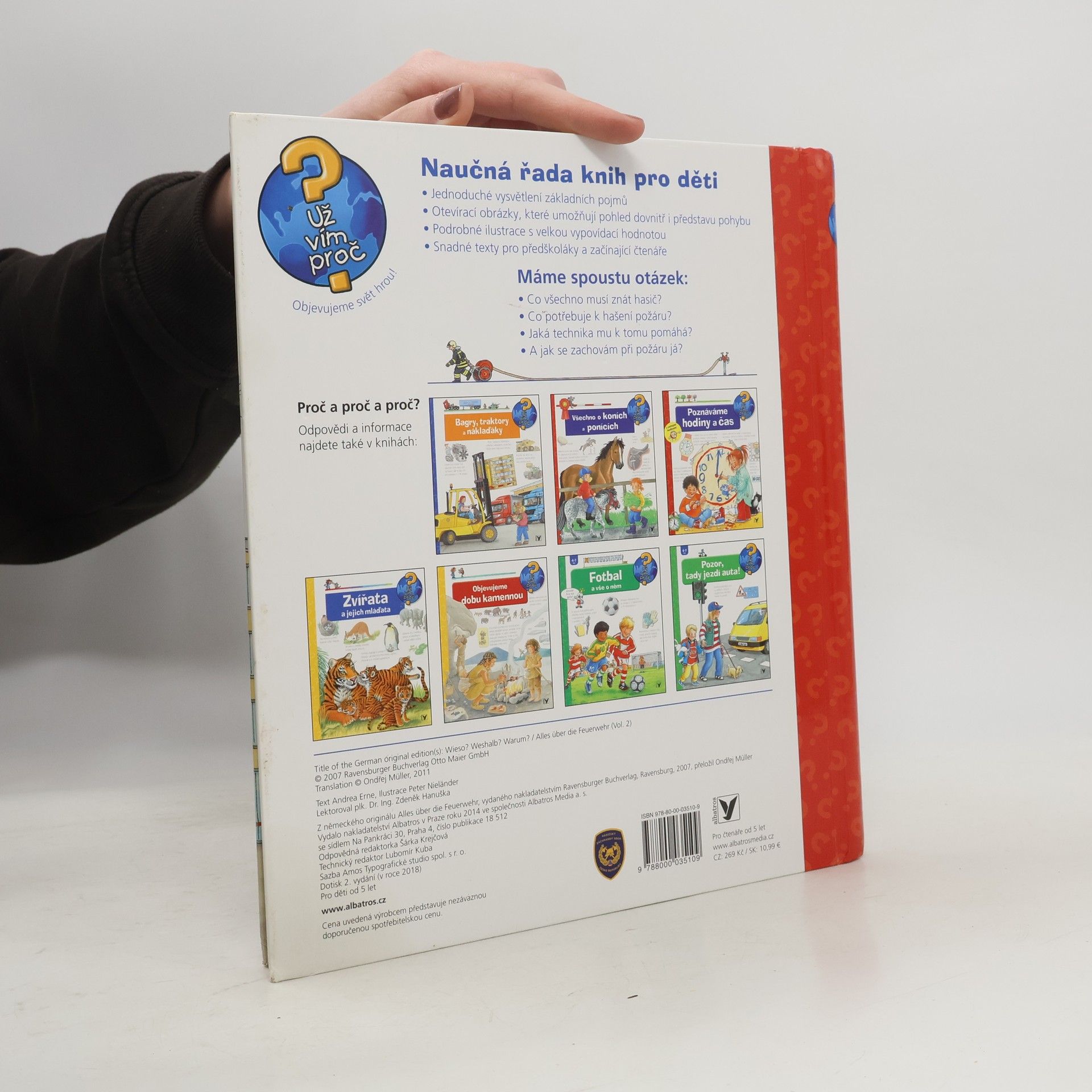 Co všechno musí znát hasič? Co potřebuje k hašení požáru? Co se děje na požární stanici a kde všude ještě hasiči pomáhají? A jak se zachovám při požáru já? Dítě se nejen dozví odpovědi na řadu otázek, ale také získá návod, jak se chovat v nebezpečné situaci.