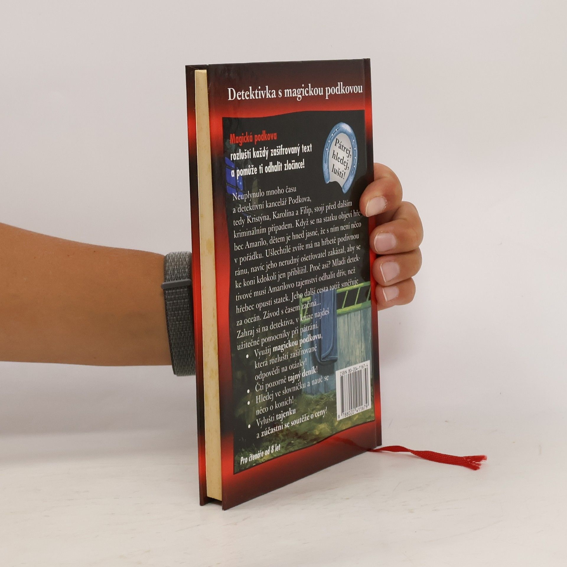 Když se na statku objeví hřebec Amarilo, je dětem hned jasné, že s ním není něco v pořádku. Mladí detektivové musí tajemství odhalit dříve, než hřebec se svým nerudným ošetřovatelem statek opustí. Začíná závod s časem... Čtenář si může spolu s dětmi zahrát na detektiva. Pátrání usnadní tajný deník a magická podkova, s jejíž pomocí se luští skryté odpovědi. Nakonec si čtenáři mohou vyluštit i tajenku. Vhod přijde i malinký slovníček z koňského prostředí.