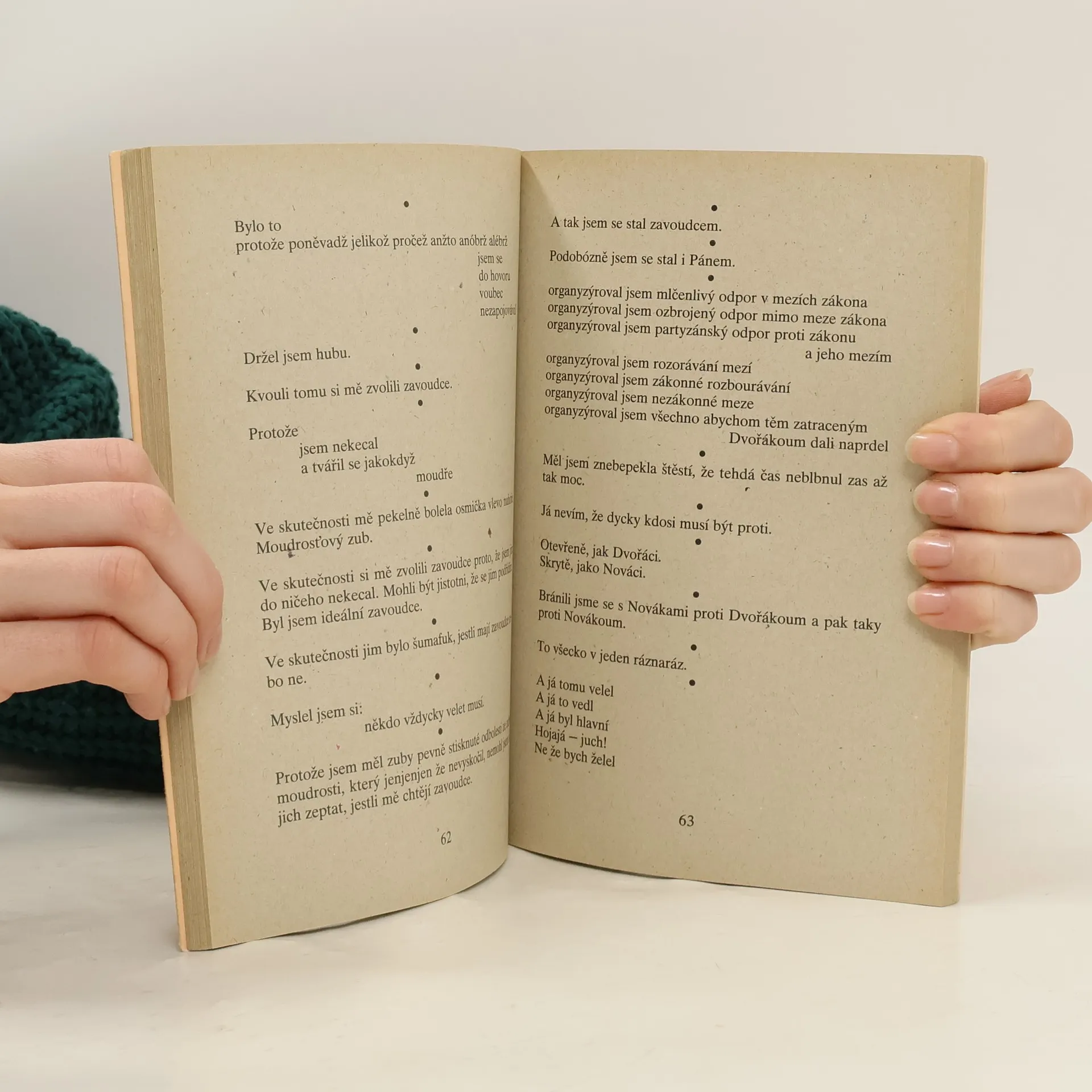 Krátké texty, jež lze přiřadit k produkci literárního undergroundu, vypovídají o usilovné snaze po zakotvení v životě. Lyrický hrdina, těžce zraněný svou nejzákladnější životní zkušeností, se snaží rozšířit svět - i o nová slova - aby se do něho vešel.