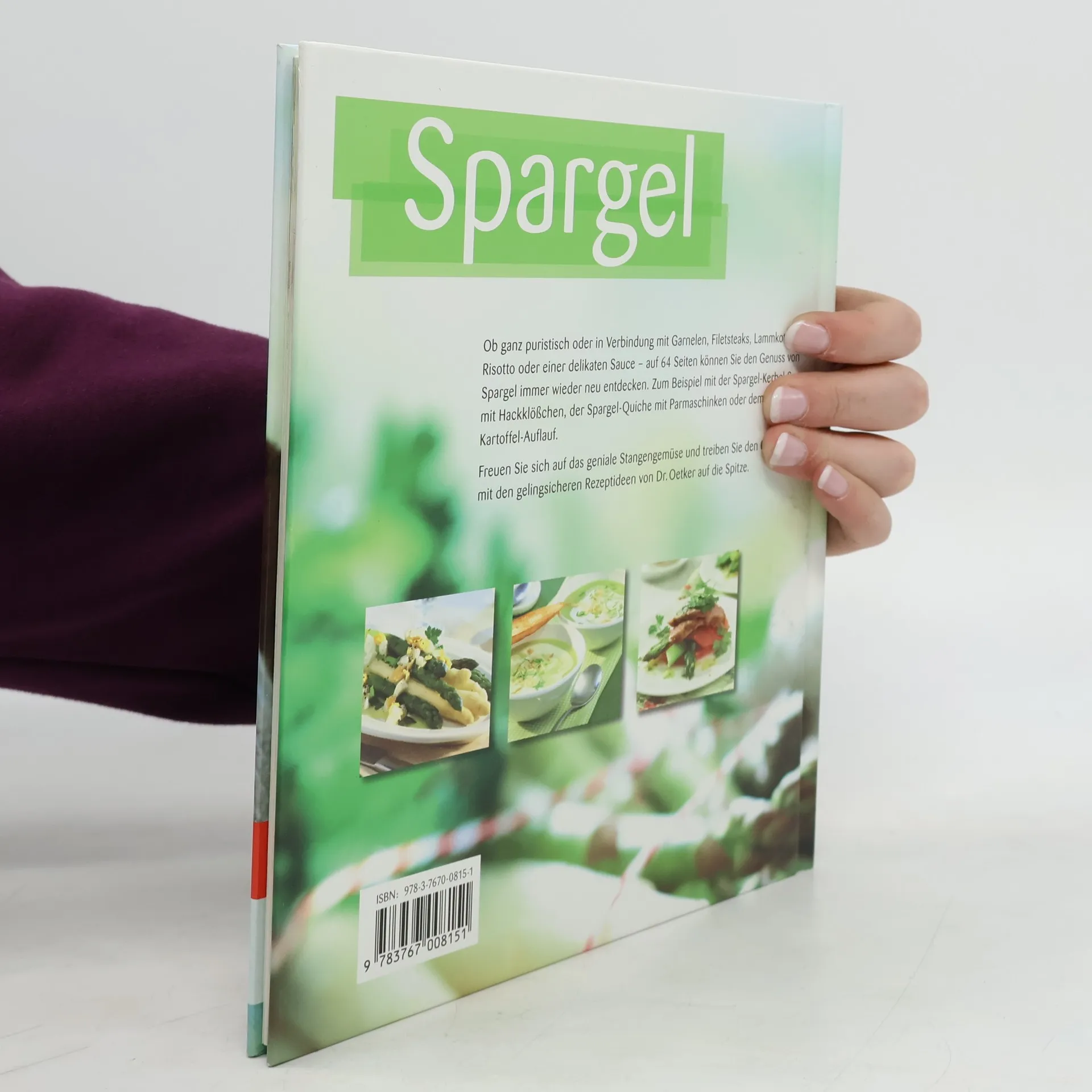 Neues von der Stange Ob ganz puristisch „ohne alles“ oder in Verbindung mit Garnelen, Filetsteaks, Lammkoteletts, Risotto oder einer delikaten Sauce – im Frühjahr freut sich jeder auf das geniale Stangengemüse. Entdecken Sie auf 64 Seiten den Genuss von Spargel immer wieder neu und treiben Sie den Geschmack mit den Rezeptideen von Dr. Oetker auf die Spitze.