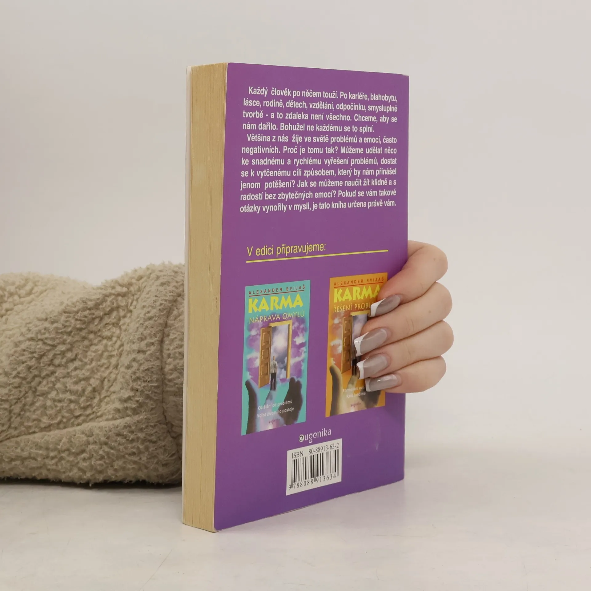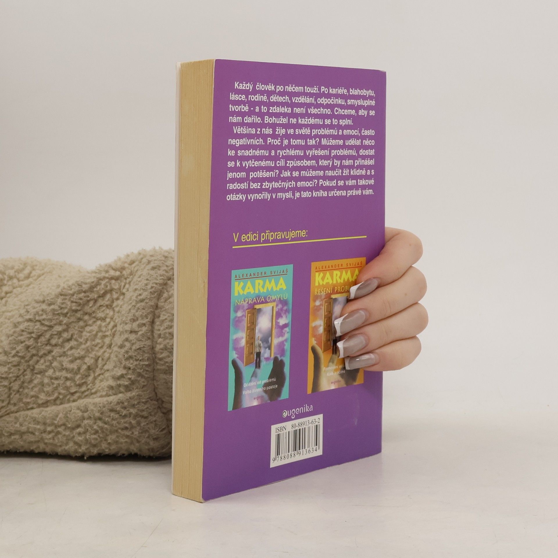 Karmické působení v každodenním životě Zdraví a karma Každý člověk po něčem touží. Po kariéře, blahobytu, lásce, rodině, dětech, vzdělání, odpočinku, smysluplné tvorbě - a to zdaleka není všechno. Chceme, aby se nám dařilo. Bohužel ne každému se to splní. Většina z nás žije ve světě problémů a emocí, často negativních. Proč je tomu tak? Můžeme udělat něco ke snadnému a rychlému vyřešení problémů, dostat se k vytčenému cíli způsobem, který by nám přinášel jenom potěšení? Jak se můžeme naučit žít klidně a s radostí bez zbytečných emocí? Pokud se vám takové otázky vynořily v mysli, je tato kniha určena právě vám. První vydání... celý text