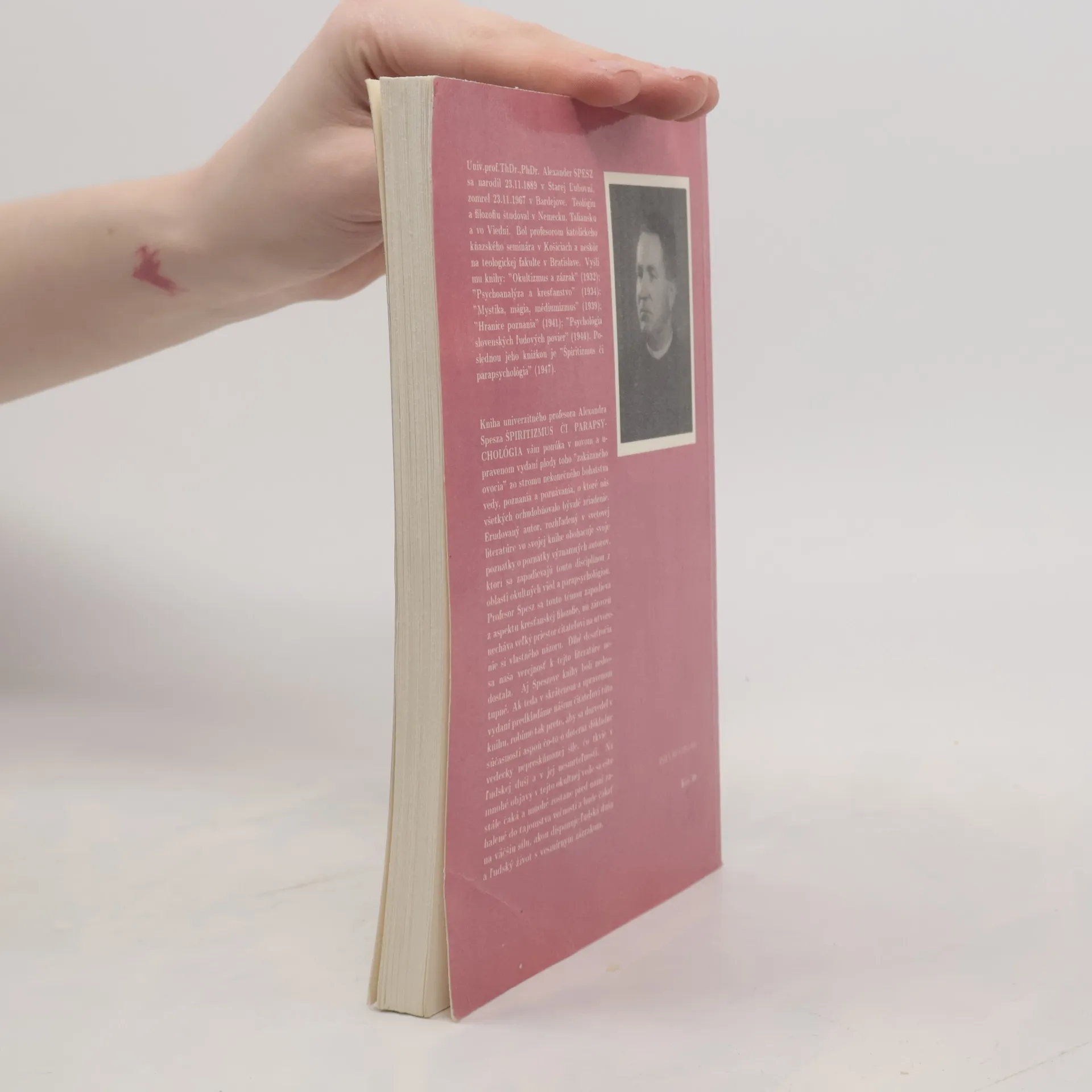 Kniha univerzitného profesora Alexandra Spesza vám ponúka v novom a upravenom vydaní plody toho „zakázaného ovocia“ zo stromu nekonečného bohatstva vedy, poznania a poznávania, o ktoré nás všetkých ochudobňovalo bývalé zriadenie. Erudovaný autor, rozhľadený v svetovej literatúre vo svojej knihe obohacuje svoje poznatky o poznatky významných autorov, ktorí sa zapodievajú touto disciplínou z oblasti okultných vied a parapsychológiou. Profesor Spesz sa touto témou zapodieva z aspektu kresťanskej filozofie, no zároveň necháva veľký priestor čitateľovi na utvorenie si vlastného názoru. Druhé, skrátené a upravené vydanie upravila Zuzana Hodošová