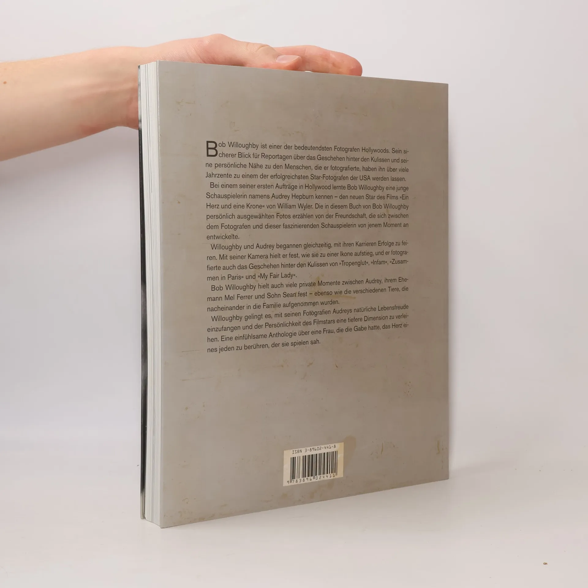 Bob Willoughby ist ein bedeutender Fotograf Hollywoods - mit sicherem Blick für Reportagen über das Geschehn hinter den Kuslissen und seine persönliche Nähe zu den Menschen, die er fotografierte, haben ihn über viele Jahrzehnte zu einem sehr erfolgreichen Star-Fotografen der USA werden lassen§Willoughby und Audrey Hepburn begannen gleichzeitig, mit ihren Karrieren Erfolge zu feiern - er hielt mit seiner Kamera fest, wie sie zu einer Ikone aufstieg, und er fotografierte auch das Gehen hinter den Kulissen. Ebenso hielt er auch private Momente fest und es gelingt ihm, Audreys natürliche Lebensfreue einzufangen und der Persönlichkeit des Filmstars eine tiefere Dimension zu verleihen.
