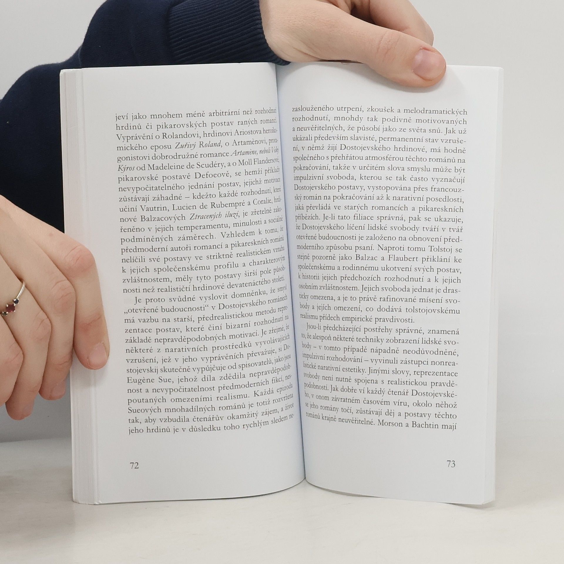 Dvě zamyšlení proslulého romanisty, teoretika románu a fikčnosti Thomase Pavela. Fikční světy literatury, zvláště jejich románová podoba, jsou v nich chápány jako „nabídka modelů pro interpretaci světů reálných“. Ta zahrnuje několik zásadních momentů lidské zkušenosti, mimo jiné konfrontaci jednání postav se soubory norem a hodnot, především mravních, s možnostmi a limity toho, co vnímáme jako projev svobody lidské bytosti. Autor se zde vyrovnává jak s různými koncepty fikčnosti (od Hamburgerové přes Goodmana k Waltonovi a Doleželovi), tak s poetikou (inspirován Bachtinem) a zvláště pak s etikou vyprávění pojímaného jako interpretace událostí v běhu času – v tom je mu oporou i současná americká kritika historického determinismu. Obecné principy uměleckého zobrazení ilustrují četné příklady ze světových románů a zároveň poskytují podněty k prověřování těchto principů v konkrétní historické situaci.