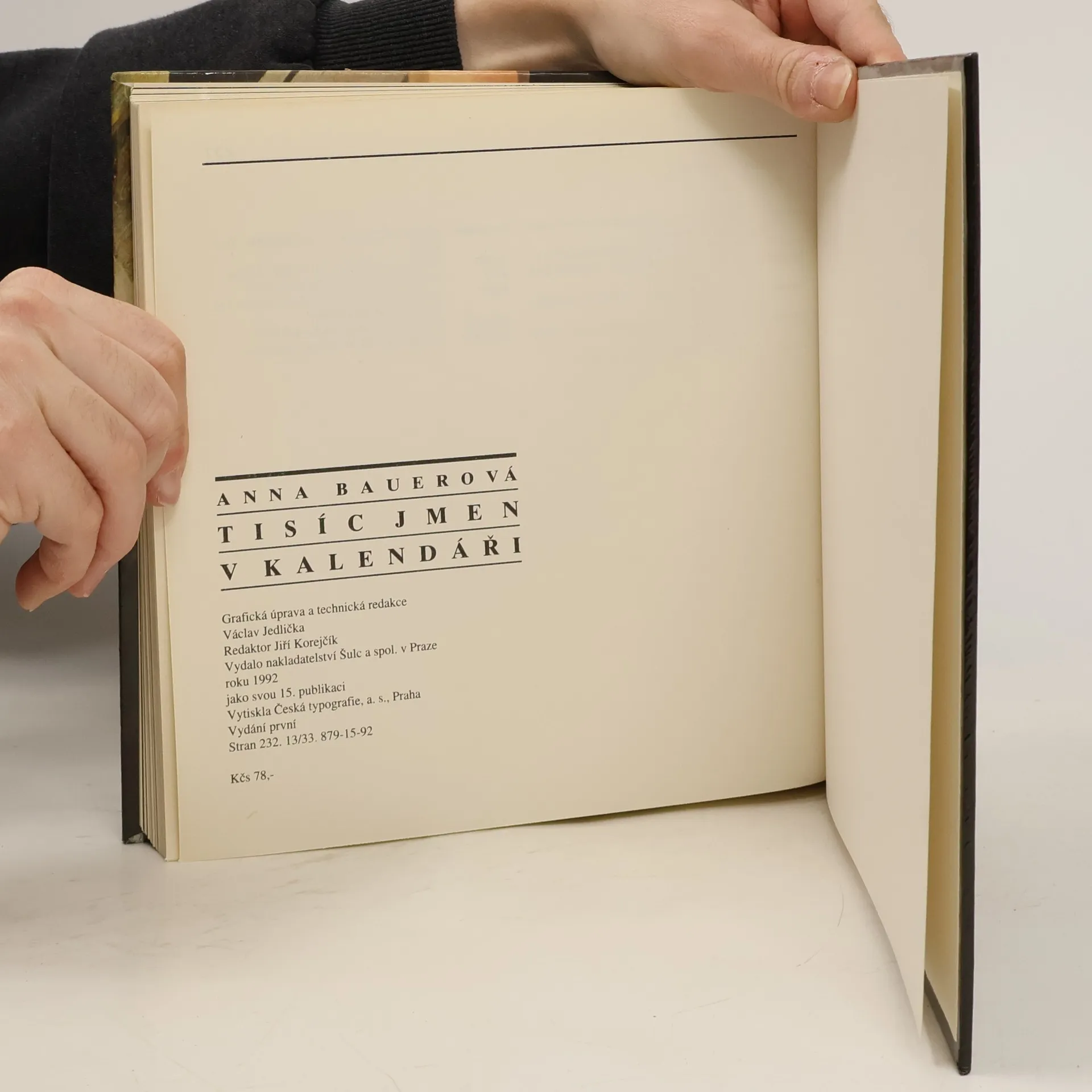 Kalendář slouží nejen k časovému určování nejrůznějších událostí v nezměnitelná posloupnosti dnů, měsíců a roků, ale všichni užíváme též jména, která do něj byla po staletí zapisována. Zvyk obsadit všechny dny kalendářního roku jmény se rozšířil v počátcích křesťanství a jmen je dnes podstatně více než dnů v roce. Po kom se tedy vlastně jmenujeme? Jaké jméno máme dát těm, kdo teprve přijdou? Jaké vlastnosti a schopnosti symbolizují jména, která zapisujeme právě narozeným do matriky? Na všechny tyto otázky odpovídá 1000 JMEN V KALENDÁŘI Anny Bauerové. V její knize se sešla opravdu výjimečná společnost — patří do ní bez rozdílu knížata a otroci, biskupové a žebráci, princezny, lupiči, prosté dívky, králové, nevěstky, filozofové, poustevníci, válečníci, umělci, císařové, mučedníci, učenci a mnoho dalších postav s nevšedními osudy. Po nich se dostala do kalendáře všechna jména, která dnes užíváme, neboť oni je proslavili. Původně však jména vyjadřovala určité (většinou kladné) vlastnosti a utvářela se dávno předtím, než lidé začali systematicky zaznamenávat své dějiny. Přehledně sestavená a kultivovaně napsaná kniha Anny Bauerové se proto dá číst i najednou jako tisíc příběhů z jednoho kalendáře. Vydání první... celý text