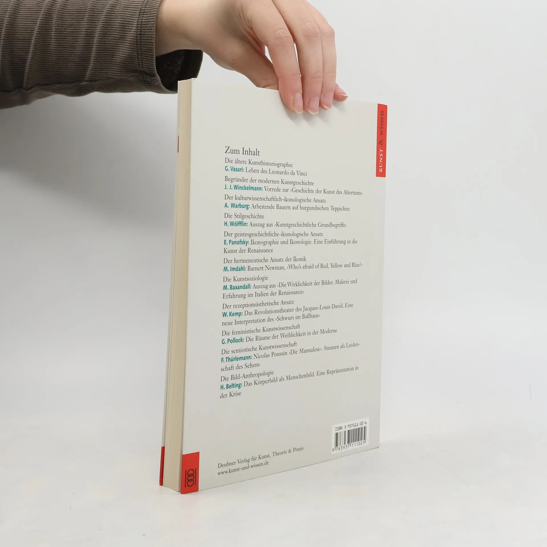 Der Band enthält eine kommentierte Auswahl paradigmatischer kunstgeschichtlicher Texte namhafter Autoren und gibt damit einen Einblick in die Entwicklung des Faches.§Der Bogen reicht von den Anfängen der Kunstgeschichte bei Giorgio Vasari und Johann Joachim Winckelmann, über die Stilgeschichte und die Ikonografie Erwin Panofskys bis hin zum Methodenpluralismus des ausgehenden 20. Jahrhunderts und jüngeren Versuchen einer Neubestimmung des Faches.