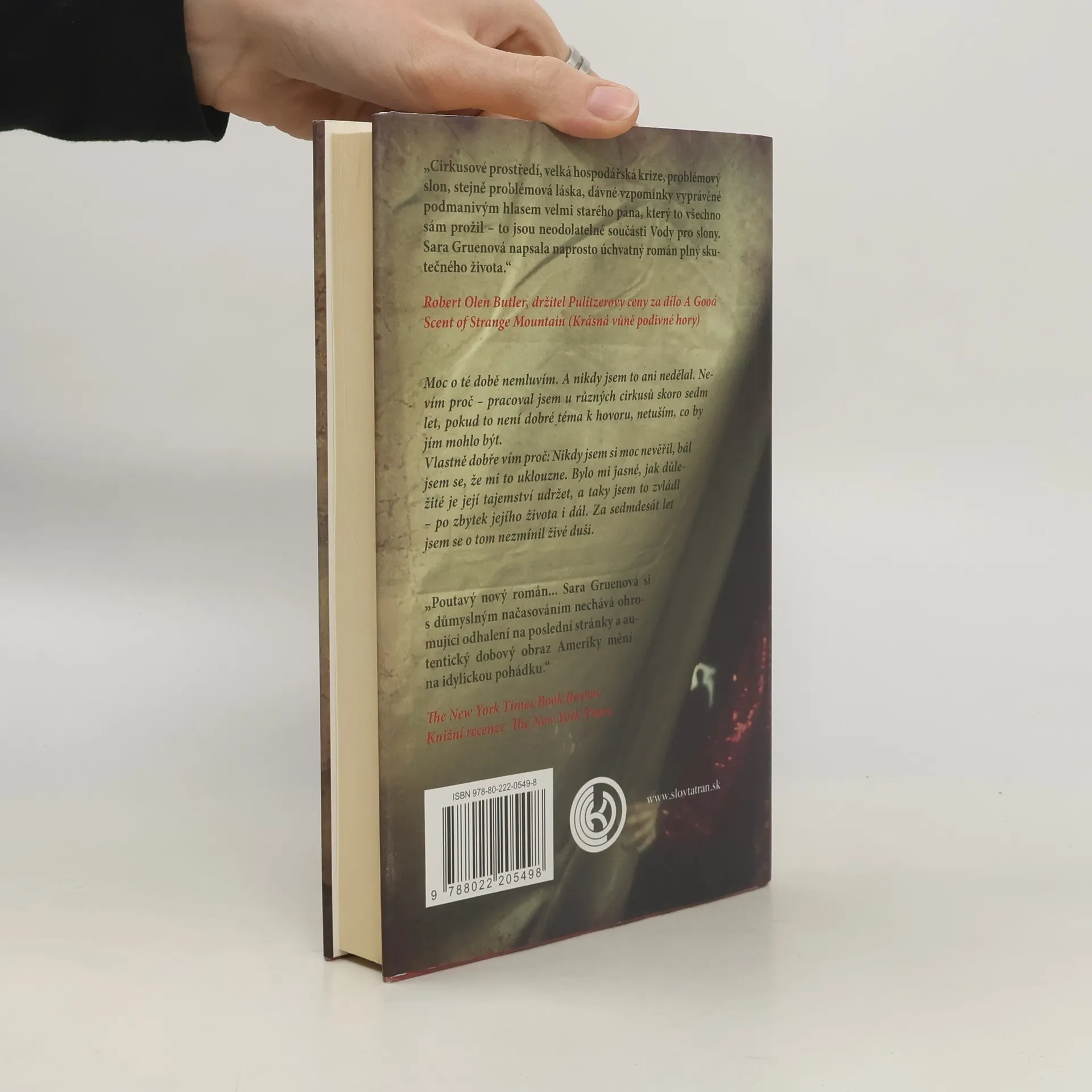 Jacob Jankowski sice o svých vzpomínkách nemluvil, ale v jeho devadesátileté paměti zůstávaly. Přechovával v ní vzpomínky na dobu, kdy ho osud hodil do vlaku, v němž měl domov cirkus Benzini – nejúžasnější podívaná na světě. Vzpomínky na svět zalidněný podivíny a klauny, který byl plný zázraků, bolesti, zloby a vášně. Na svět s vlastními úzce vymezenými iracionálními pravidly, s vlastním pojetím života i smrti. Svět cirkusu byl pro Jacoba zároveň spásou i peklem. Přišel do něho, protože ho opustilo štěstí – zůstal bez rodiny a bez peněz a netušil, jak dál, dokud nepřistál na své lokomotivou tažené „lodi komediantů“. Právě začínala krize a každý v tomhle třetiřadém cirkuse byl rád, že má alespoň nějakou práci. Marlenu, hvězdu volné drezúry koní, sem přivedla láska k nesprávnému muži, řediteli zvěřince s násilnickými sklony. Slonice Rosie se k cirkusu dostala jako obrovská šedivá naděje, nové číslo, které mělo cirkus zachránit. Jenže s Rosie nebylo možné žádné číslo nacvičit, nebyla schopná poslechnout ani jednoduché příkazy. Pouto, které mezi touto nesourodou trojicí vzniklo, bylo založené na lásce a důvěře a nakonec bylo pro všechny tři jejich jedinou nadějí na přežití.