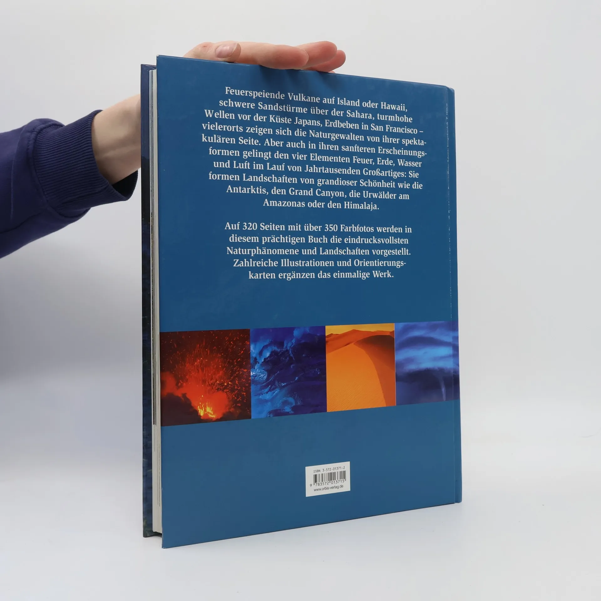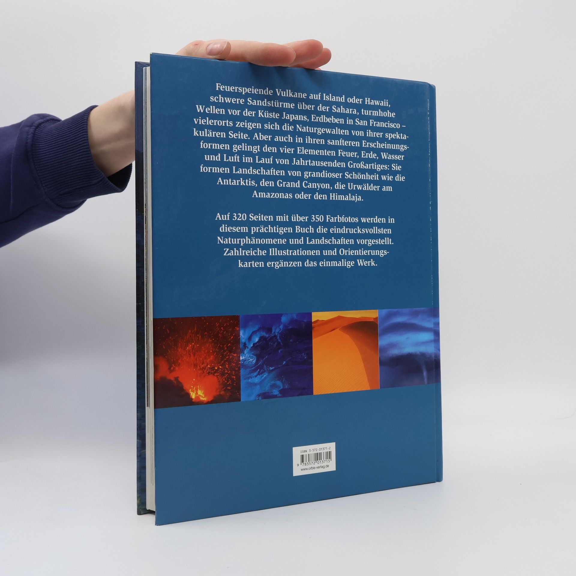 Text-/Bildband über die Naturgewalten, die bei Vulkanen, Gebirgsformationen, im Meer und in der Luft herrschen, mit zahlreichen Informationen zu Entstehung der Landschaften, zu Thermalquellen, der Entwicklung der Böden u.a.m