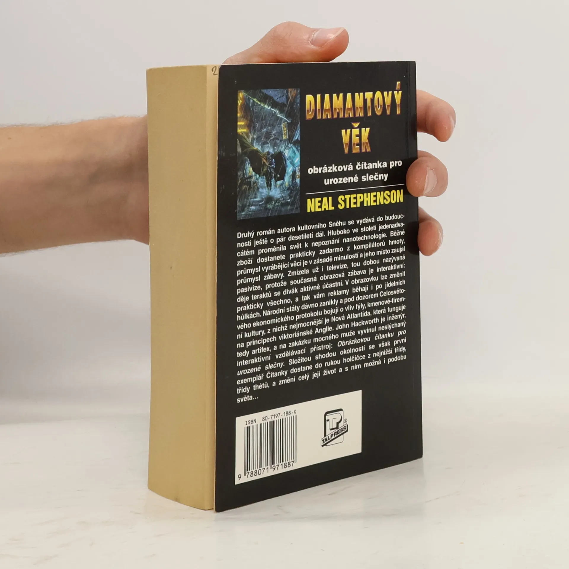 Druhý román autora kultovního Sněhu se vydává do budoucnosti ještě o pár desetiletí dál. Hluboko ve století jedenadvacátém proměnila svět k nepoznání nanotechnologie. Běžné zboží dostanete prakticky zadarmo z kompilátorů hmoty, průmysl vyrábející věci je v zásadě minulostí a jeho místo zaujal průmysl zábavy. Zmizela už i televize, tou dobou nazývaná pasivize, protože současná obrazová zábava je interaktivní: děje teraktů se divák aktivně účastní. V obrazovku lze změnit prakticky všechno, a tak vám reklamy běhají i po jídelních hůlkách. Národní státy dávno zanikly a pod dozorem Celosvětového ekonomického protokolu bojují o vliv fýly, kmenově-firemní kultury, z nichž nejmocnější je Nová Atlantida, která funguje na principech viktoriánské Anglie. John Hackworth je inženýr, tedy artifex, a na zakázku mocného muže vyvinul neslýchaný interaktivní vzdělávací přístroj: Obrázkovou čítanku pro urozené slečny. Složitou shodou okolností se však první exemplář Čítanky dostane do rukou holčičce z nejnižší třídy, třídy thétů, a změní celý její život a s ním možná i podobu světa…