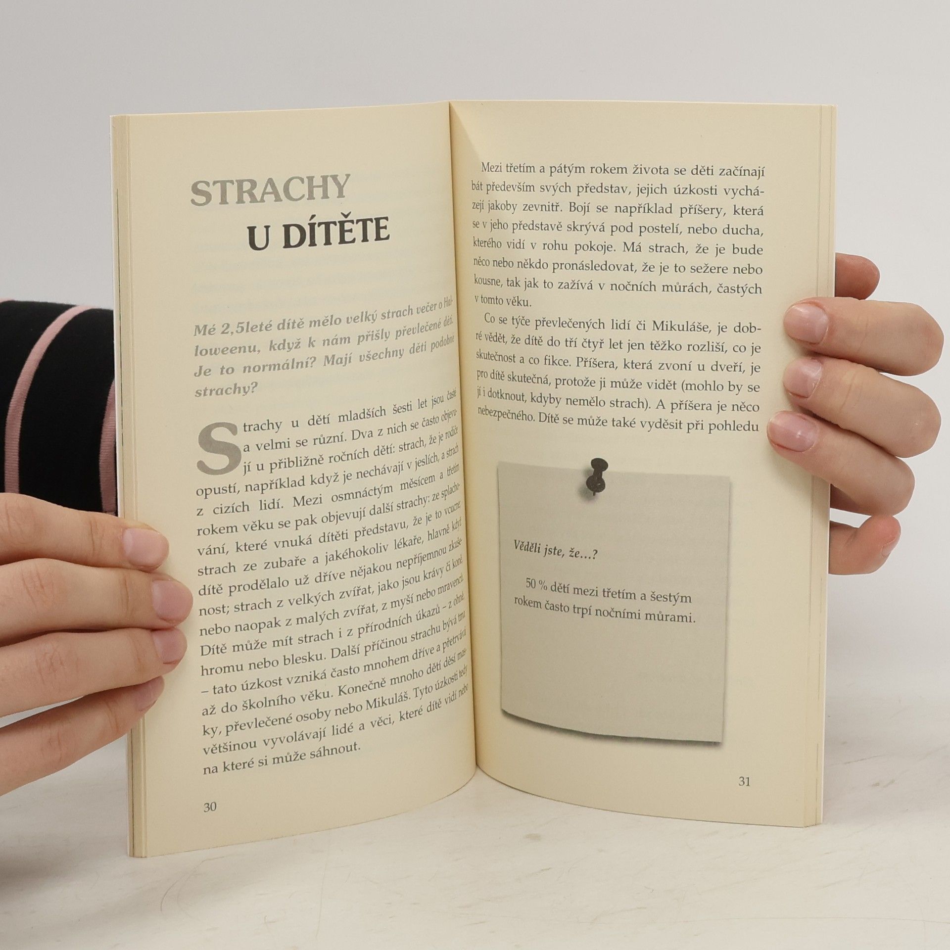 Autorka odpovídá na dotazy, které si rodiče běžně kladou ohledně vývoje svého dítěte od narození až do školního věku, např.: Kdy zjistím, že mé dítě je pravák nebo levák? Proč si strká nožičky do pusinky? Proč se tak často vzteká, kdy může začít jíst vidličkou?