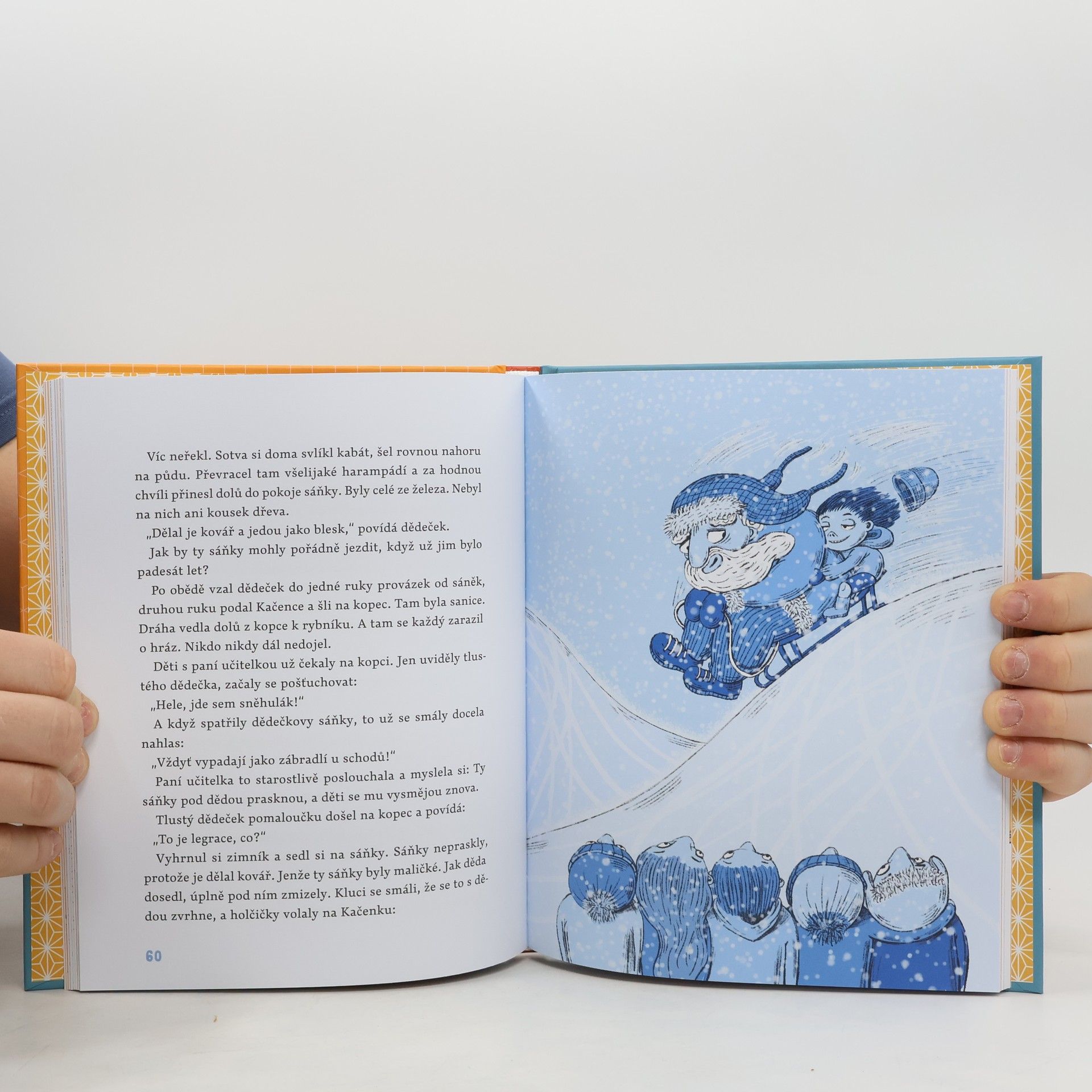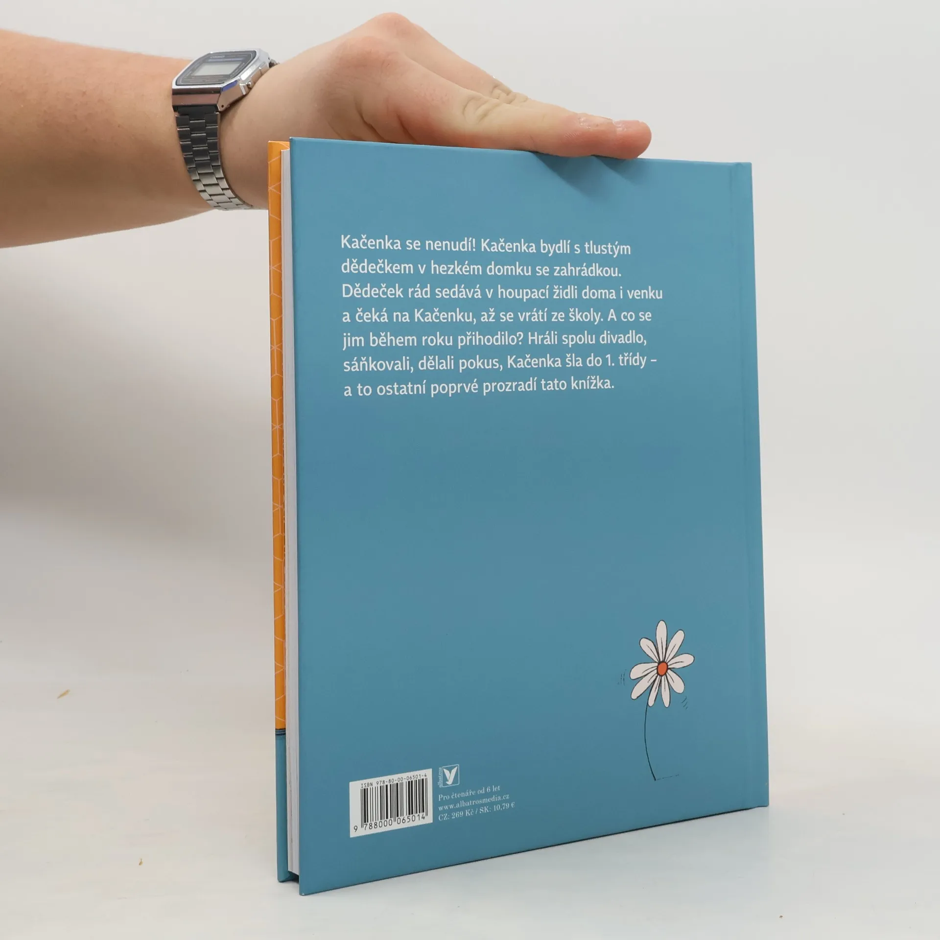 Kačenka bydlí s tlustým dědečkem v hezkém domku se zahrádkou. Dědeček rád sedává v houpací židli doma i venku a čeká na Kačenku, až se vrátí ze školy. A co se jim během roku přihodilo? Hráli spolu divadlo, sáňkovali, dělali pokus, Kačenka šla do 1. třídy – a to ostatní poprvé prozradí tato knížka.