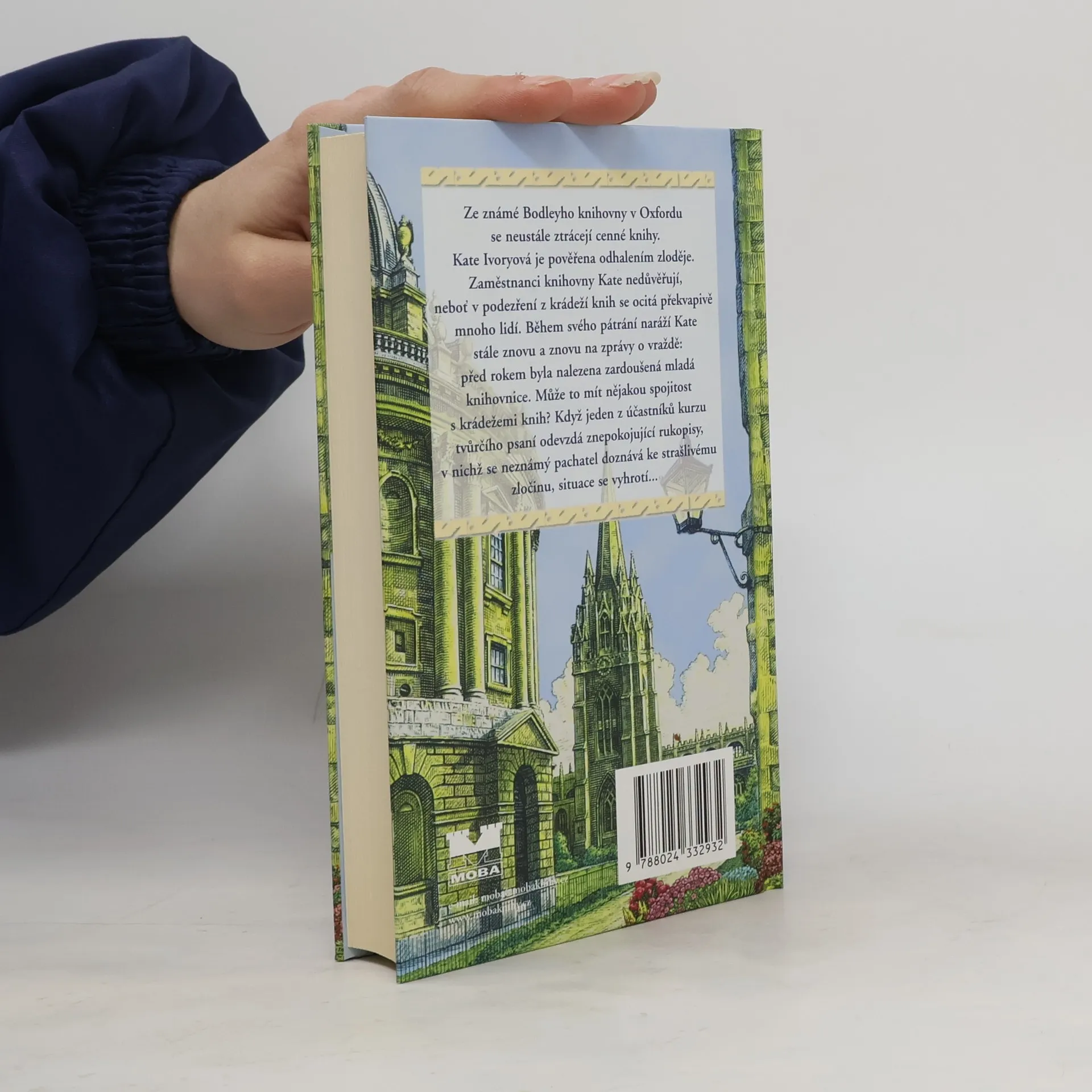 Ze známé Bodleianovy knihovny v Oxfordu se neustále ztrácejí cenné knihy. Kate Ivoryová je pověřena odhalením zloděje. Zaměstnanci knihovny Kate nedůvěřují, neboť v podezření z krádeží knih se ocitá překvapivé množství lidí. Během svého pátrání naráží Kate stále znovu a znovu na zprávy o vraždě: před rokem byla nalezena zardoušená mladá knihovnice. Může to mít nějakou spojitost s krádežemi knih? Když jeden z účastníků kurzu tvůrčího psaní odevzdá znepokojující rukopisy, v nichž se neznámý pachatel doznává ke strašlivému zločinu, situace se vyhrotí… Přeložil Tomáš Butala.