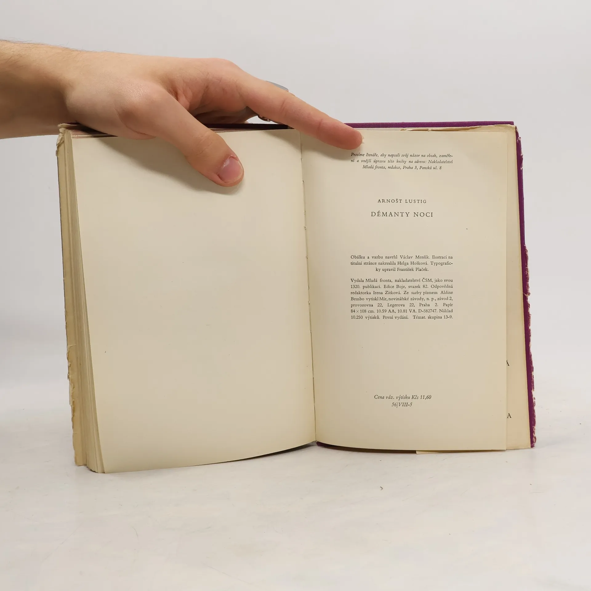 Nakladatelství Franze Kafky se rozhodlo znovu vydat jednu z prvních a nejzásadnějších knih Arnošta Lustiga. Jsou to Démanty noci vycházející již potřetí v rozšířeném souboru jedenácti strhujících povídek z koncentračních táborů, transportů smrti i pražského květnového povstání. Lustig věnuje knihu parašutistům operace Anthropoid, kteří hrdinně zemřeli po vykonání atentátu na Reinharda Hendricha. Knihou chce uctít tyto hrdiny a také všechny oběti války.