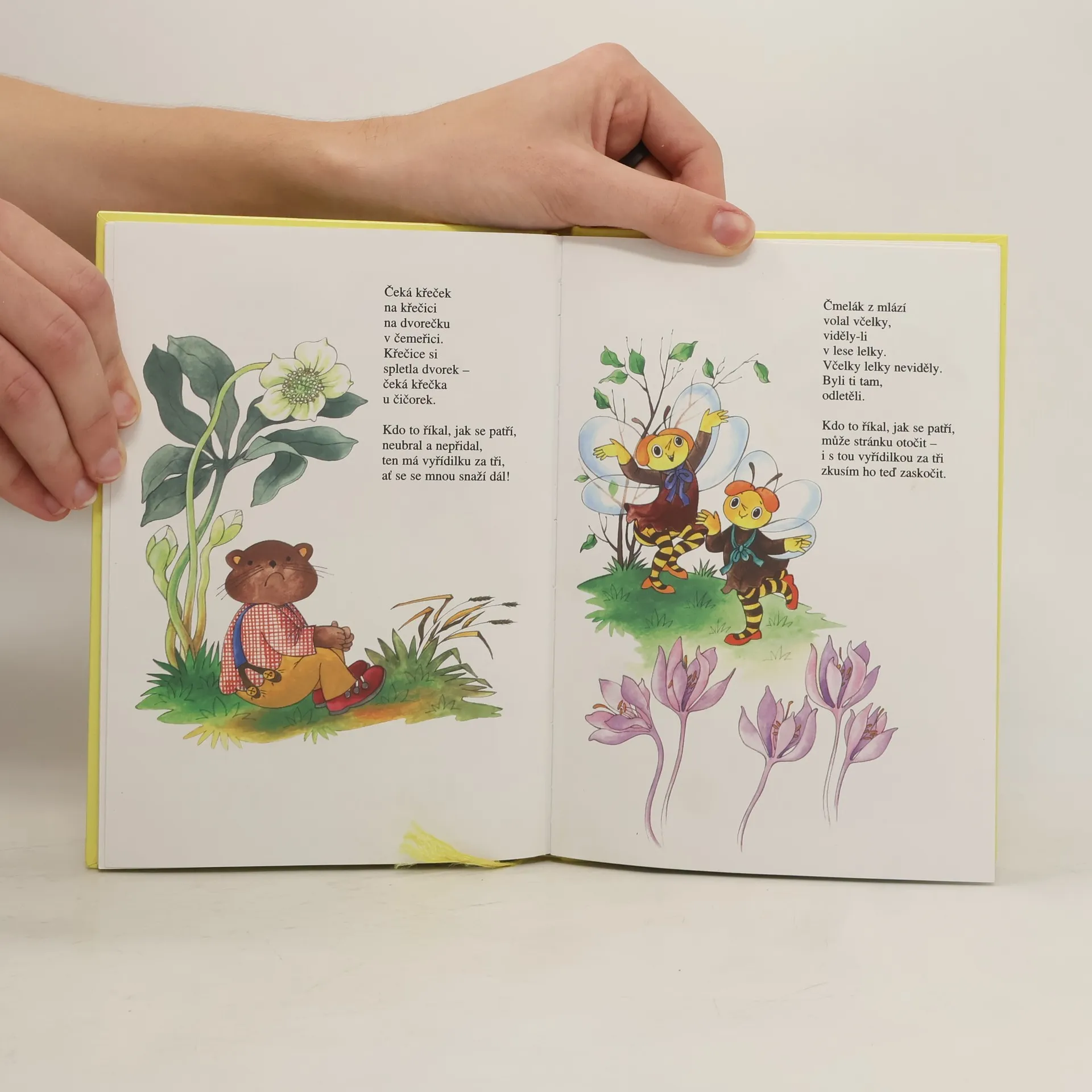 Krásná výpravná knížka, v níž jsou verše na jednotlivá písmena abecedy, dále tvary velkých i malách písmen tiskací a psací a jednoduché kresby reálií začínajících na jednotlivá písmena. V závěru knížky jsou verše na procvičování obtížných hlásek a také pohádky, v nichž je vtipný příběh kombinovaný s "jazykolamy