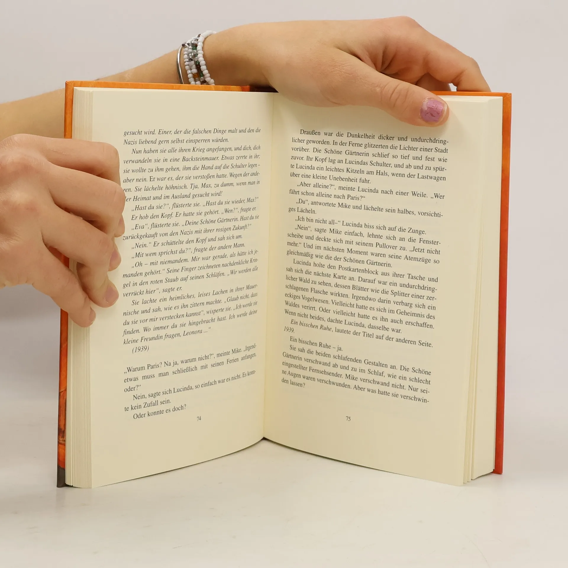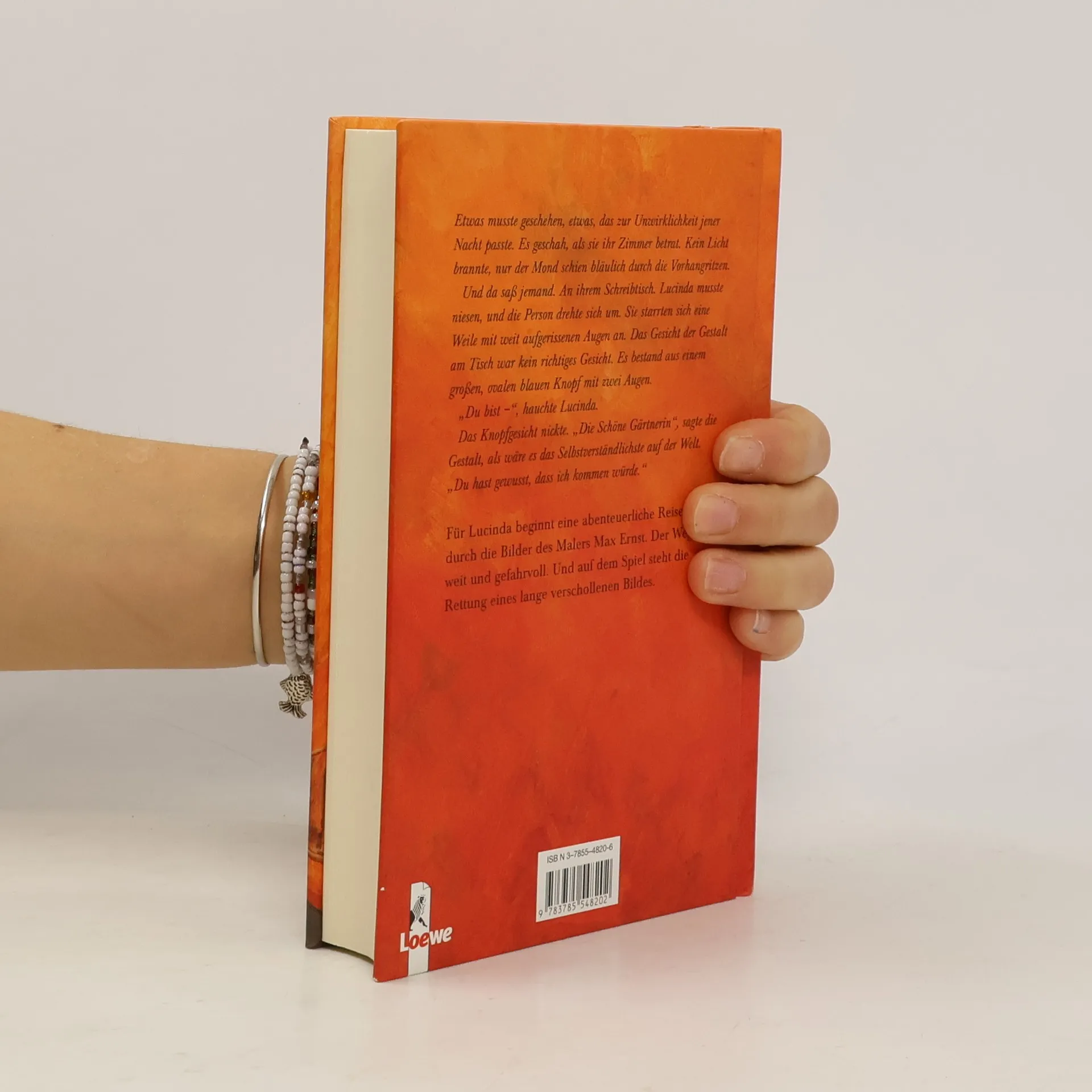 Eine kleine Vorgeschichte: Max Ernst malte zwei Versionen des Bildes „Die Schöne Gärtnerin“. Die erste „Die Schöne Gärtnerin oder die Erschaffung Evas“, entstand 1923 in Paris, wurde später von den Nationalsozialisten beschlagnahmt und in der Ausstellung „Entartete Kunst“ diffamiert. Seitdem ist sie spurlos verschwunden. 1967 malte Ernst, der den Verlust des Bildes nie ganz verwinden konnte, eine zweite, etwas abstraktere Version: „Die Rückkehr der Schönen Gärtnerin“. - Soweit die Fakten. Inhalt: In einer hellen Mondnacht steht in der kleinen Wohnung über dem Museum plötzlich die Schöne Gärtnerin vor Lucinda und erzählt ihr, dass sie aus ihrem Bild gestiegen sei, um ihre verschollene Schwester zu suchen. Lucinda glaubt, sie träumt. Doch sie träumt nicht: und so machen sich die beiden auf eine abenteuerliche Suche quer durch Europa. Schon bald gesellt sich ein merkwürdiger blinder Junge namens Mike zu ihnen. Und noch jemand hat sich ihre Fersen geheftet: eine seltsame Frau, die vor nichts zurückzuschrecken s